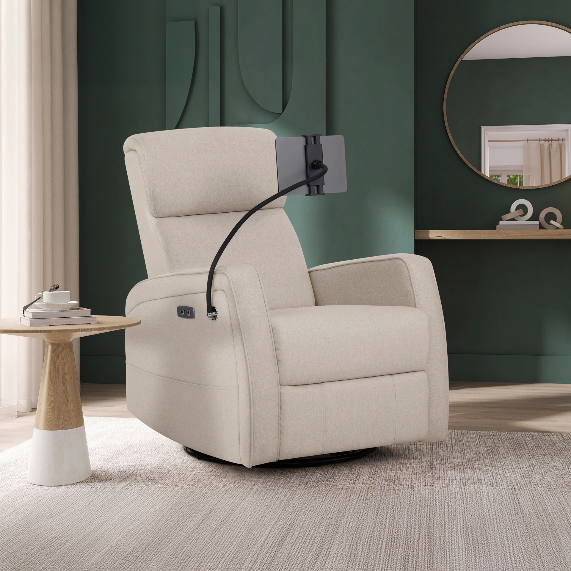 Fauteuil berçant inclinable motorisé Maverick avec support à appareil mobile intégré en tissu