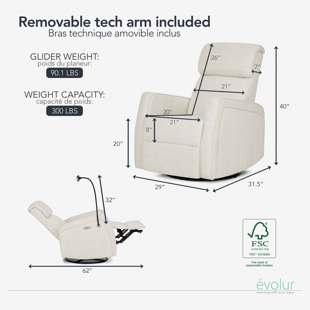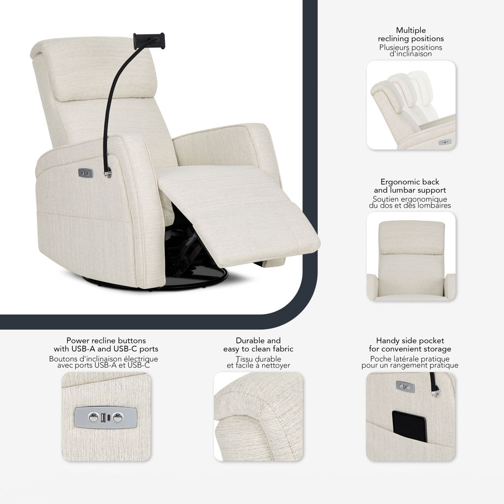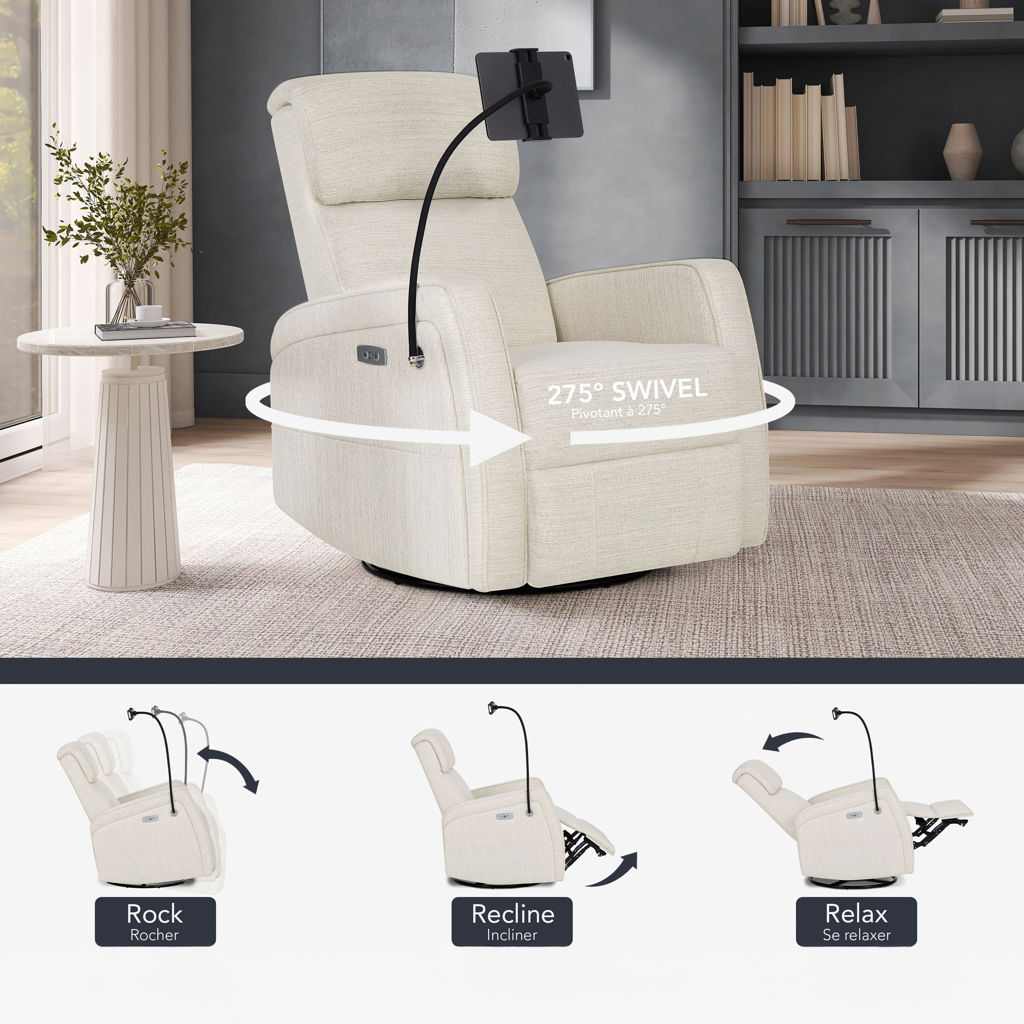 Fauteuil berçant inclinable motorisé Maverick avec support à appareil mobile intégré en tissu