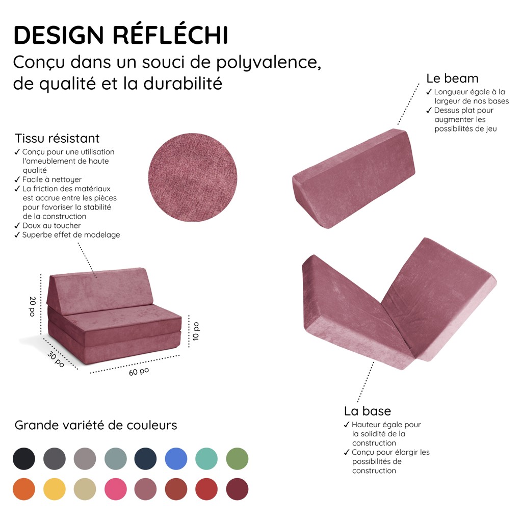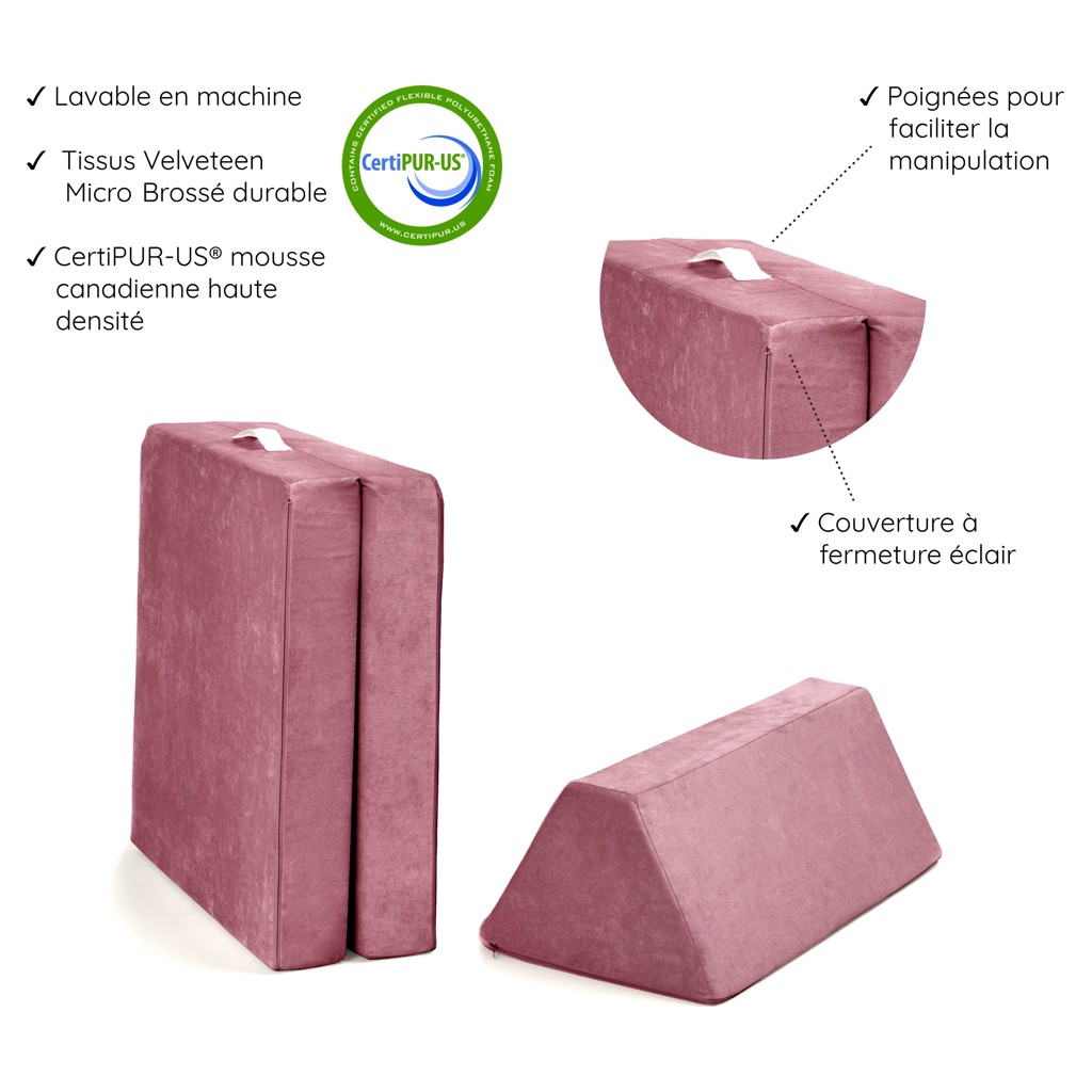 Lavable en machine tissu micro-velours durable! Mousse Canadienne haute densité CertiPUR-US®