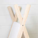 Nous nous sommes inspirés de la tendance scandinave pour dessiner cette étagère en forme de tipi. Minimaliste, elle est ouverte à l’avant et à l’arrière, afin de donner une impression de légèreté. Nous avons jumelé le pin (pour les tablettes et la structure) au coton (pour les côtés) pour un effet chaleureux, tout en douceur. Facile d’entretien Les côtés de cette amusante étagère sont faits à 100 % de coton blanc. Pour l’entretien, rien de plus facile! Retirez les côtés et lavez-les à la machine à l’eau froide, au cycle régulier. Suspendez pour sécher et donnez un coup de fer à repasser à basse température pour effacer les plis.