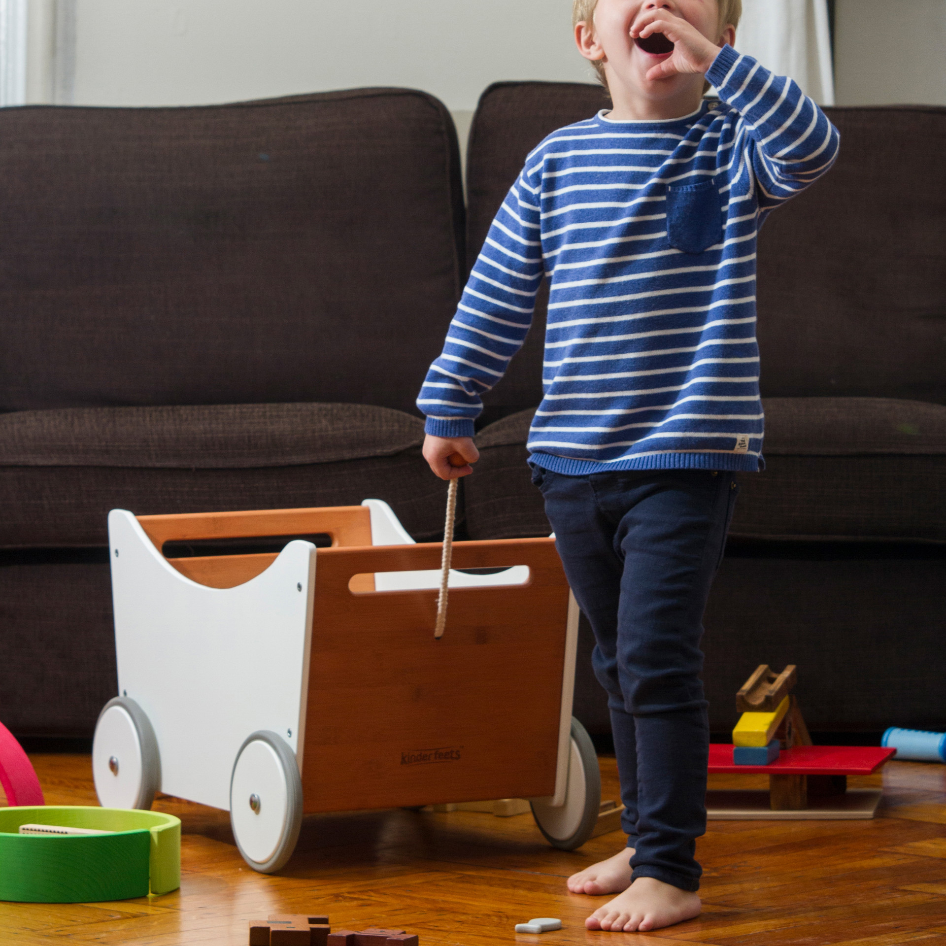 C'est le meilleur moyen pour les tout-petits d'organiser et de ranger tous leurs jouets préférés dans un même espace sûr. Le trotteur 2-en-1 Kinderfeets Toy Box peut facilement être poussé ou tiré d'une pièce à l'autre et d'un endroit à l'autre!