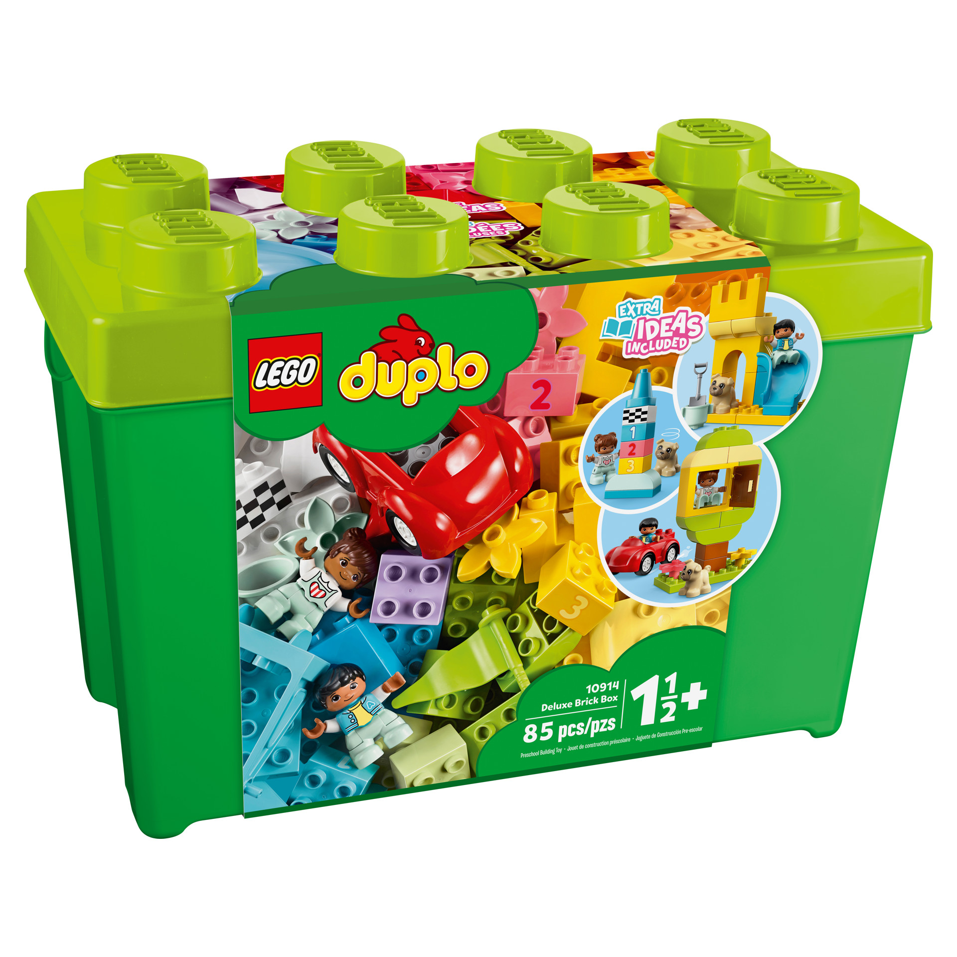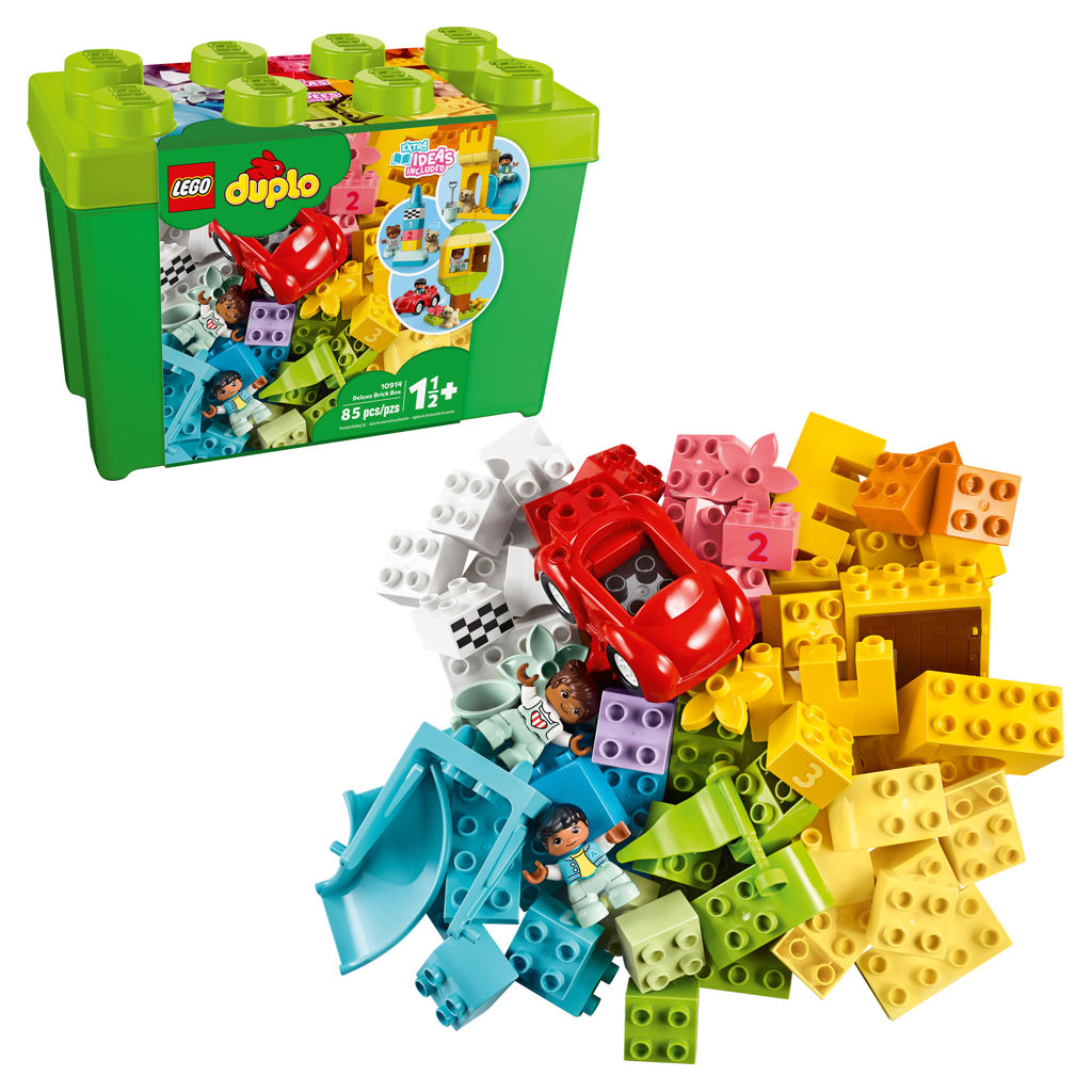 • Boîte de rangement pratique – L’assortiment coloré de briques, de pièces, de numéros et de personnages est rangé dans une boîte verte avec un couvercle à 8 tenons de style LEGO® DUPLO®. Combinez le contenu avec d’autres ensembles DUPLO pour encore plus de plaisir.