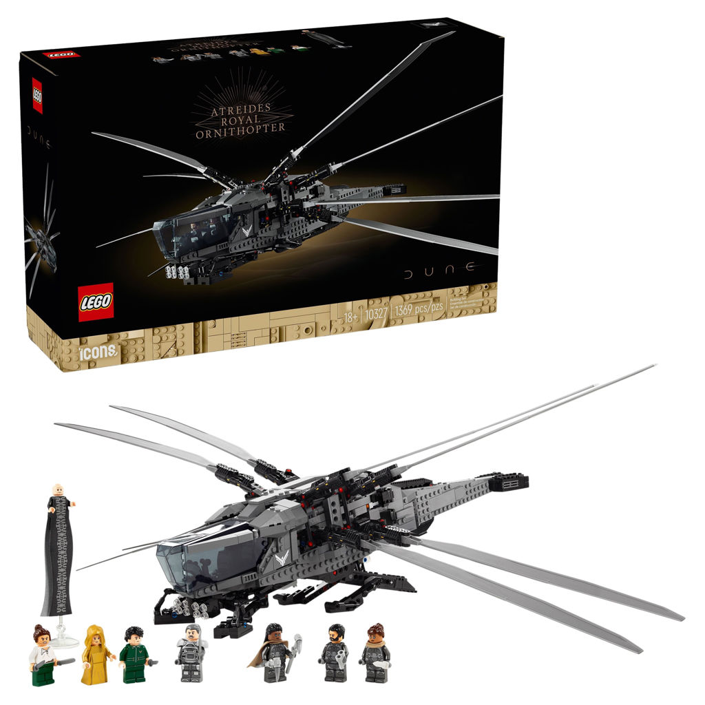 Voici une idée de cadeau sur le thème du film épique pour les amateurs de Dune : L’ensemble de construction LEGO® Icons Dune Atreides Royal Ornithopter (10327) pour adultes. Faites plaisir à votre cinéphile préféré ou prenez le temps de construire une réplique méticuleusement détaillée de l’avion légendaire de la Maison Atréides.