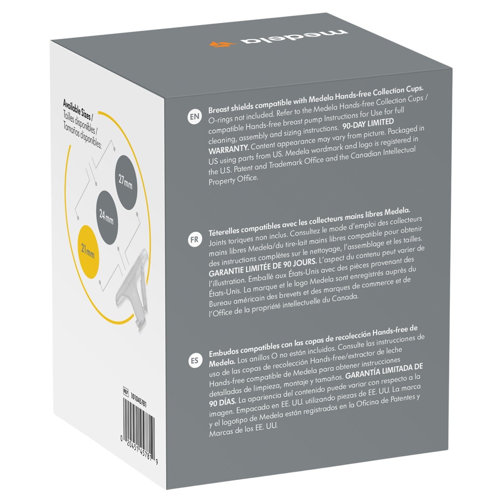 Fabriquées à partir de matériaux sans BPA, ces confortables téterelles sont disponibles en 3 tailles (21 mm, 24 mm, 27 mm) et sont conçues pour être compatibles avec les tire-laits Medela équipés de Collecteurs mains libres.