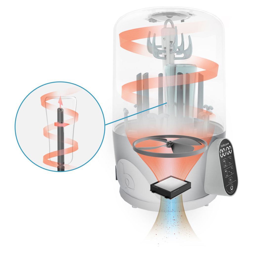 Nous savons que chaque seconde compte pour les parents occupés, et rien n’est plus important que la santé et la sécurité de votre bébé. Le stérilisateur de biberons Turbo Pure 3-en-1 est conçu pour fournir la solution de nettoyage la plus efficace pour les biberons, les sucettes et les accessoires en plastique et en verre, vous offrant une tranquillité d’esprit totale dès le premier jour. Grâce à la technologie de filtration HEPA avancée, il élimine 99 % des bactéries, des odeurs et des polluants nocifs en seulement 8 minutes, garantissant que les éléments essentiels de votre bébé restent propres, secs et stockés en toute sécurité dans un environnement purifié jusqu’à 24 heures.