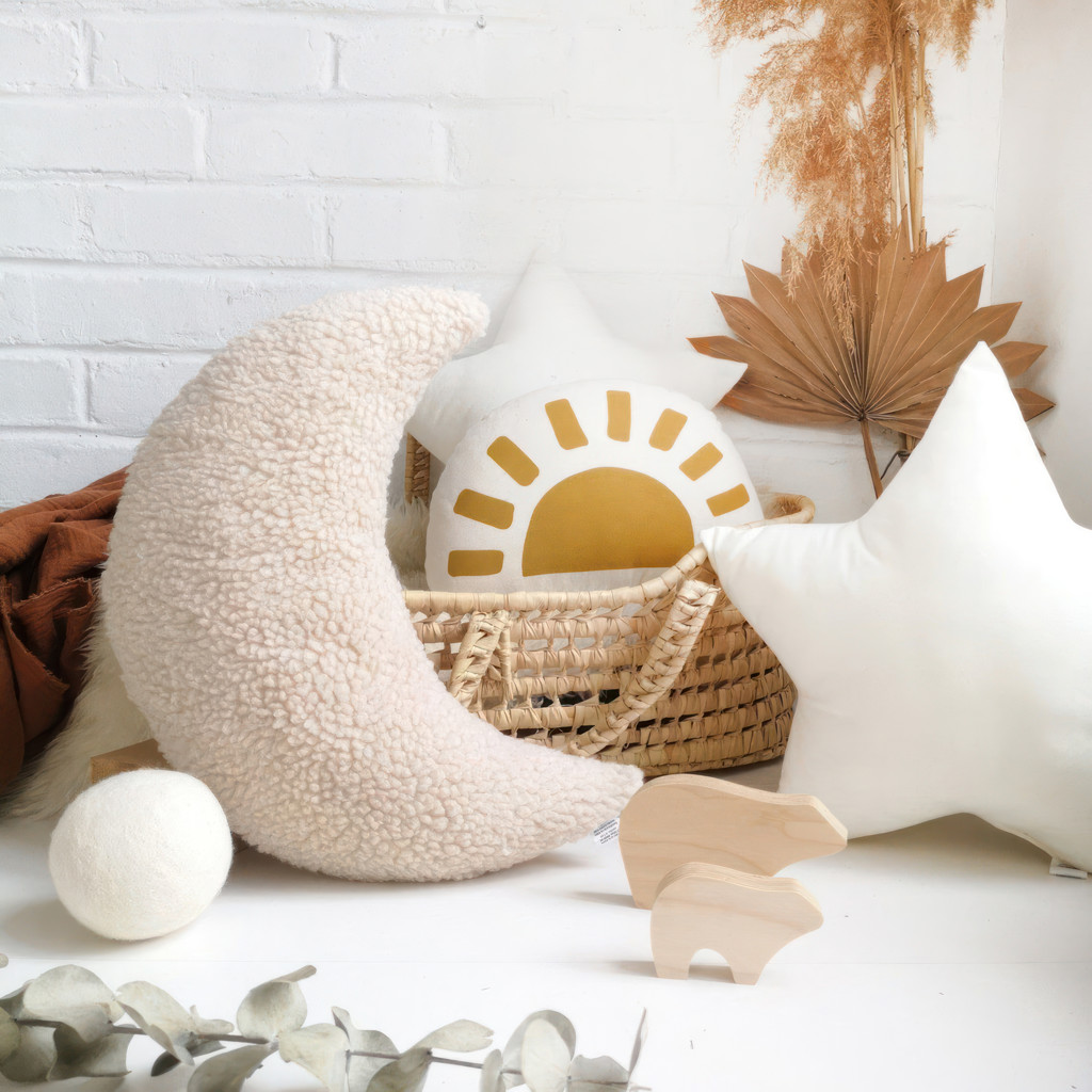 Le coussin de lune en sherpa Butter Flying trouve facilement sa place dans n'importe quelle chambre d'enfant.