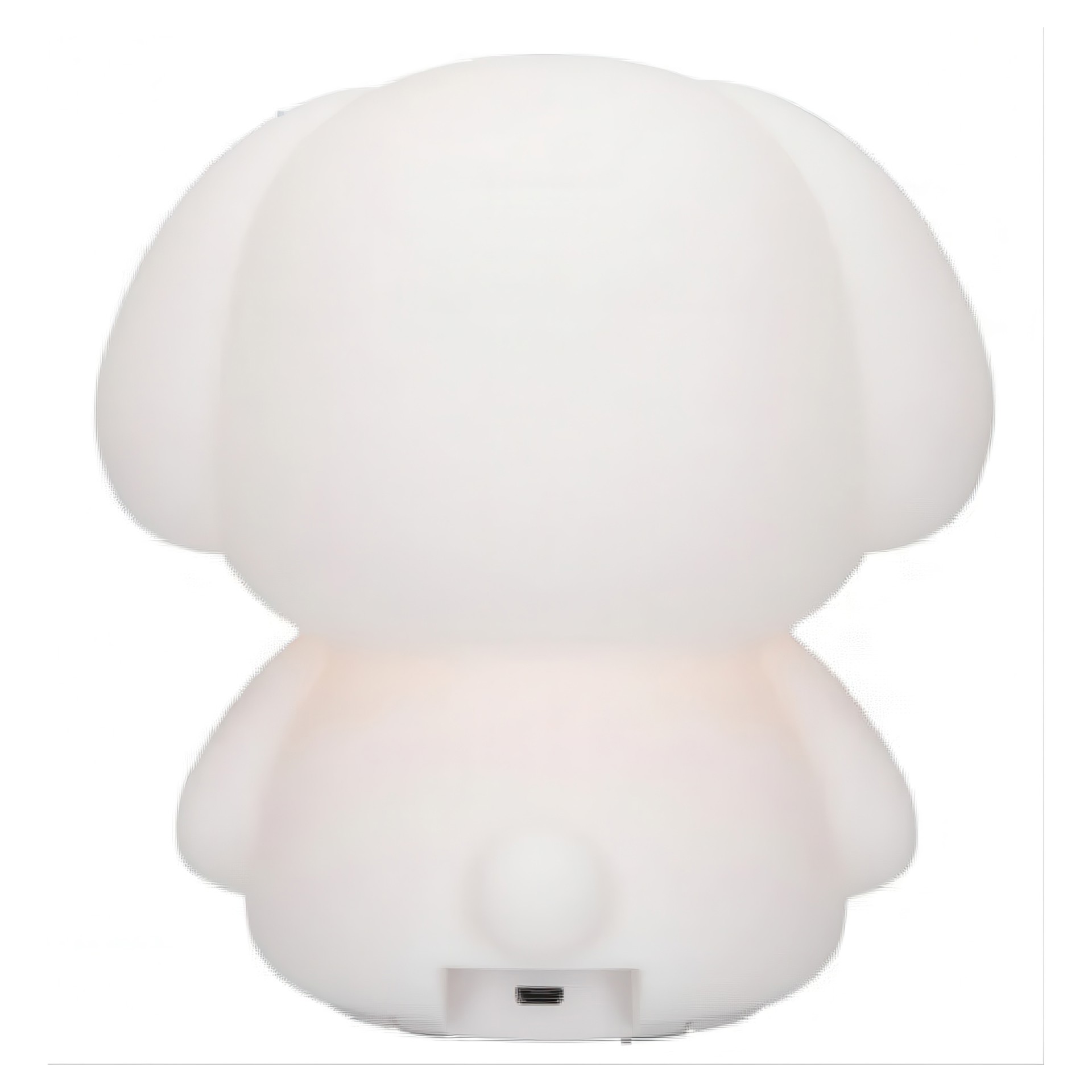 Notre nouvelle lampe interactive en silicone souple est prête à transformer la chambre de votre enfant... Elle se branche pour une utilisation toute la nuit et ne nécessite pas de piles ! Elle se connecte à votre téléphone pour jouer votre musique préférée grâce à sa fonction bluetooth, et nous avons gardé le meilleur pour la fin : une lumière activée par le son. Oui, vous avez bien entendu, sa jolie lumière danse au rythme de la musique que vous écoutez. Vous voulez régler le mode de lumière du blanc pâle au blanc chaud ou du blanc chaud à la transition de couleur? Nelly le petit chiot peut aussi le faire. Vous voulez créer une atmosphère sereine devant la cheminée? Vous voulez organiser une fête romantique avec votre moitié ou endormir votre enfant en lui jouant une berceuse de rêve? Nelly est aussi bon danseur qu'il est un doux compagnon pour vos moments de repos !