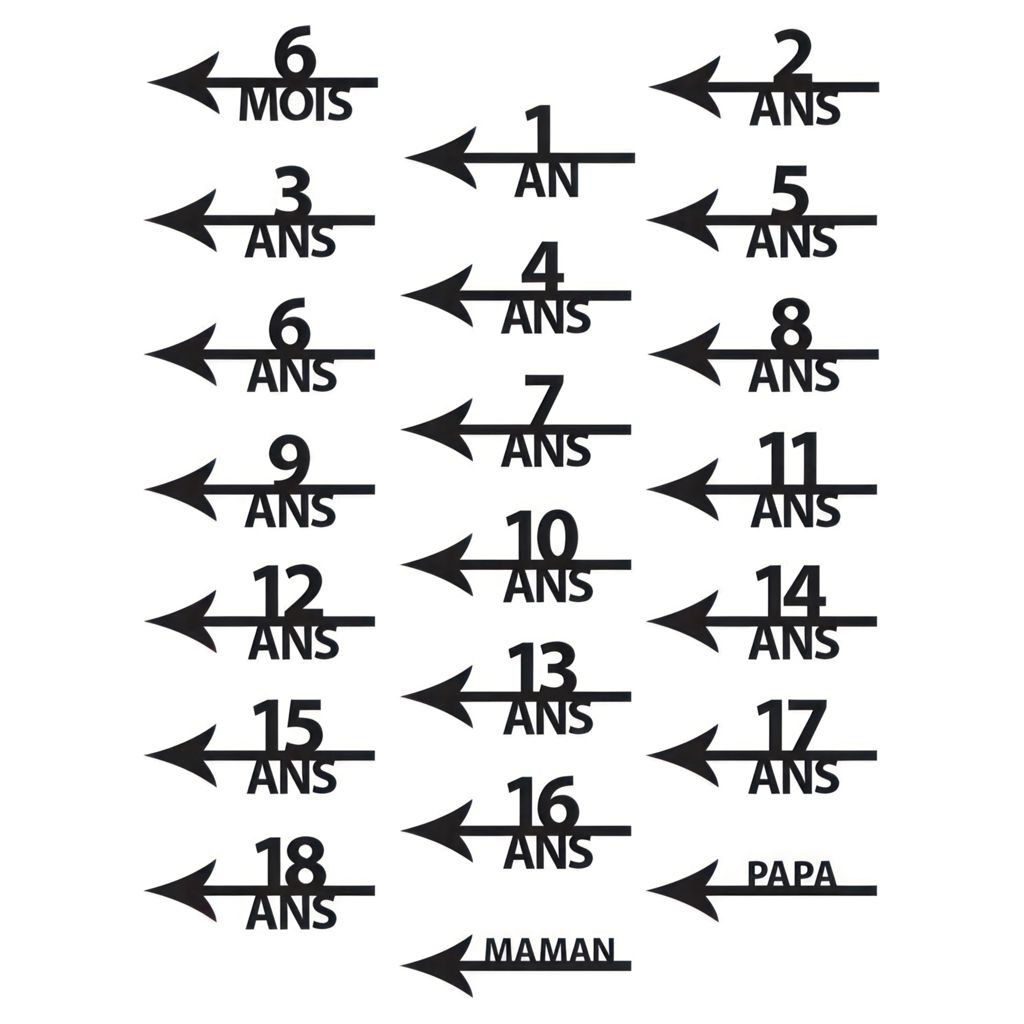 Les autocollants noirs permettent de marquer votre échelle de croissance de 6 mois à 18 ans.