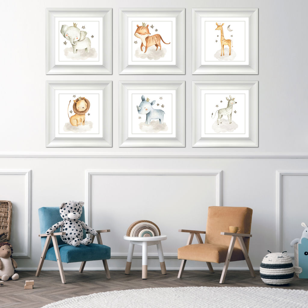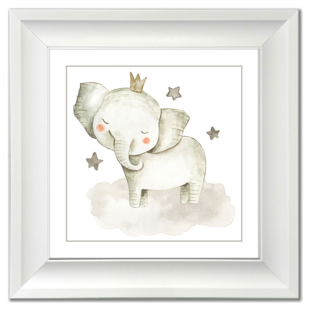 Éléphant et ses étoiles imprimés sur une toile canvas encadré en bois de pin.