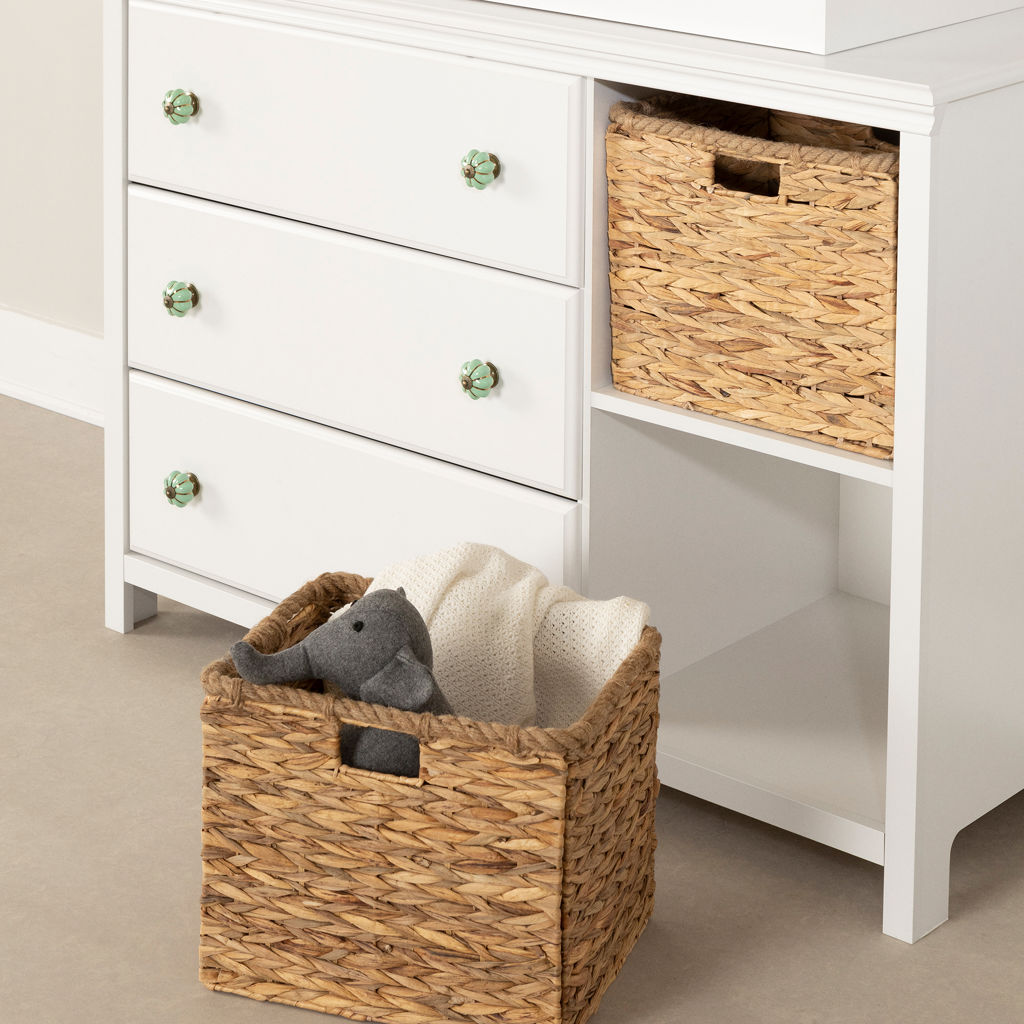 Cette table à langer vous donnera la paix d’esprit que vous désirez. Les trois grands tiroirs sont idéaux pour y ranger tous les vêtements, les couches, ainsi que les pyjamas que votre petit aura besoin. D’autre part, deux ravissants paniers en osier sont inclus avec ce meuble. Cet élément clé ajoutera du rangement à portée de main, en plus de donner un look bohémien à votre décor. Tout sera propre et bien rangé. Quoi de mieux?