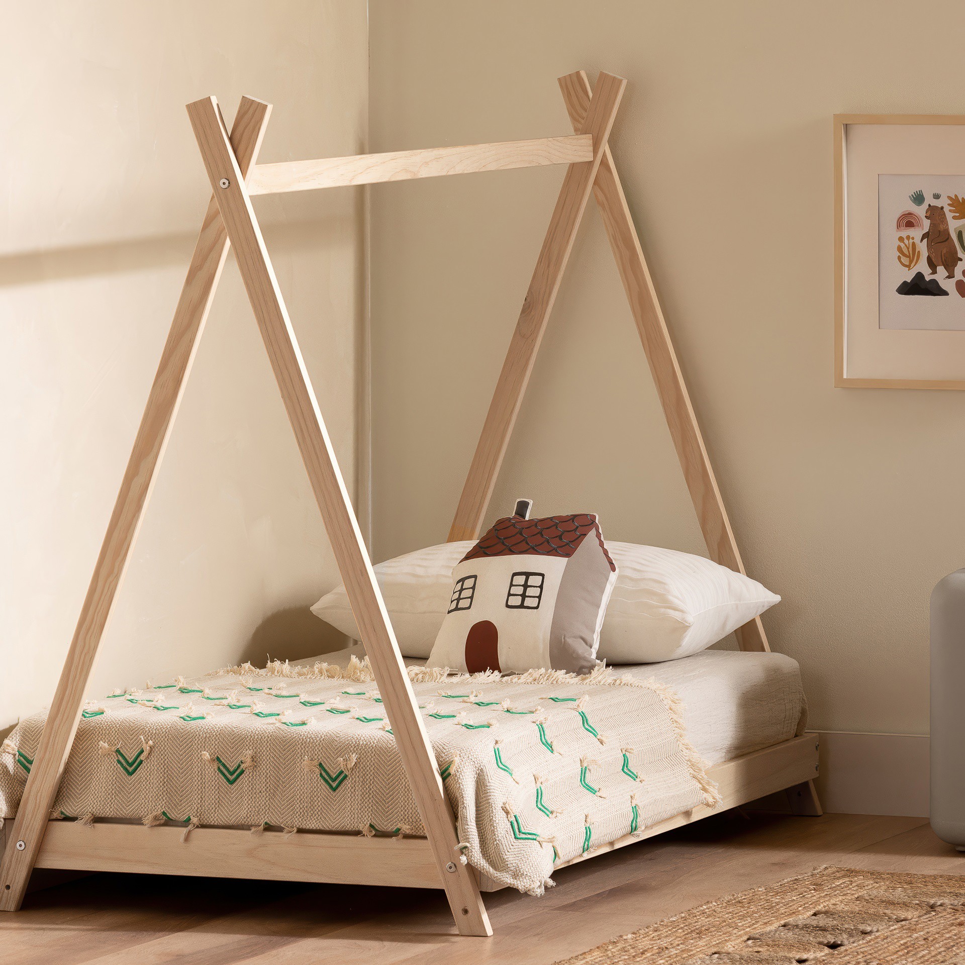 Cette fabuleuse base de lit de style scandinave sera magnifique dans la chambre de votre enfant. Son design minimaliste et ludique créera un décor tendance à coup sûr!