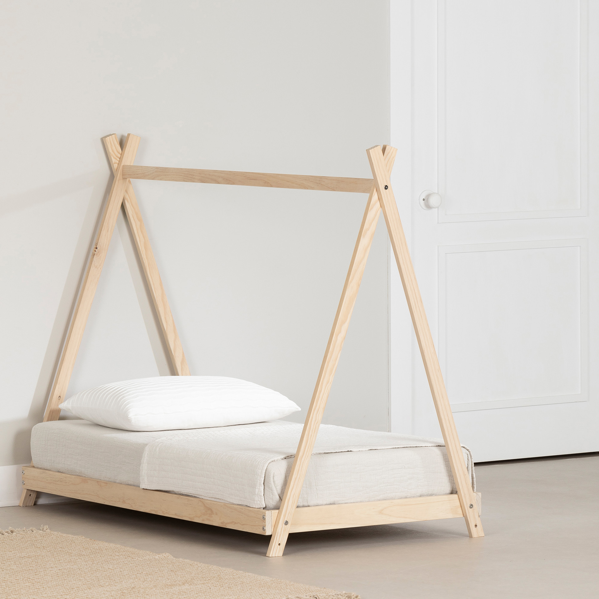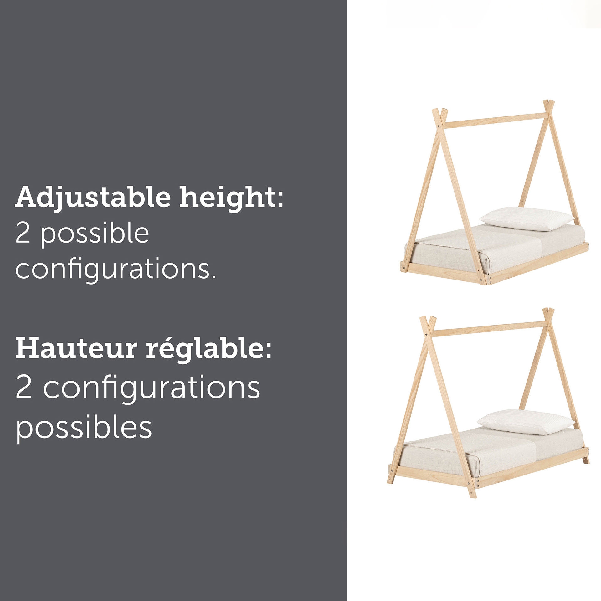 Cette plateforme en bois de pin sera la transition parfaite entre le lit de bébé et le lit à une place.