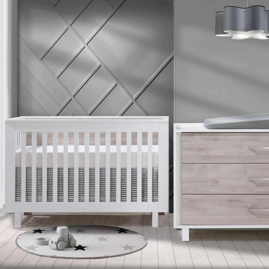 Découvrez l'ensemble Urban, composé d'un lit bébé convertible et d'une commode 3 tiroirs. Ses lignes épurées et carrées, ainsi que ses poignées en métal européen haut de gamme, font de la collection URBAN un produit d'exception qui répondra à vos exigences de style et de sécurité. Conçu pour mettre en valeur un style intemporel et la beauté d'un savoir-faire artisanal, l'ensemble Urban est conçu pour durer toute une vie et offrir un espace de couchage confortable et une solution de rangement pour votre enfant en pleine croissance.