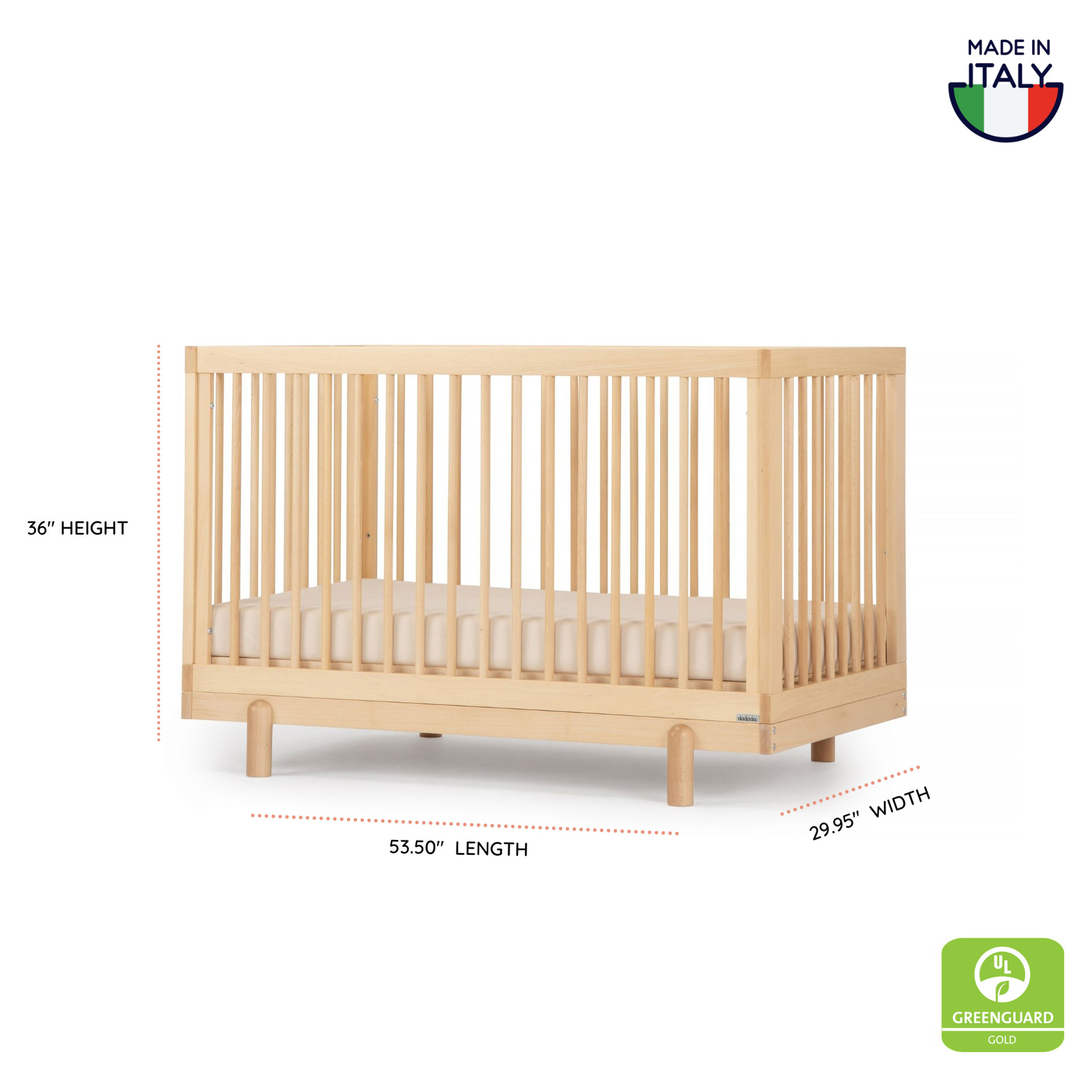 • Certifié GREENGUARD Gold en bois de hêtre massif, finition sans danger pour les bébés.