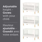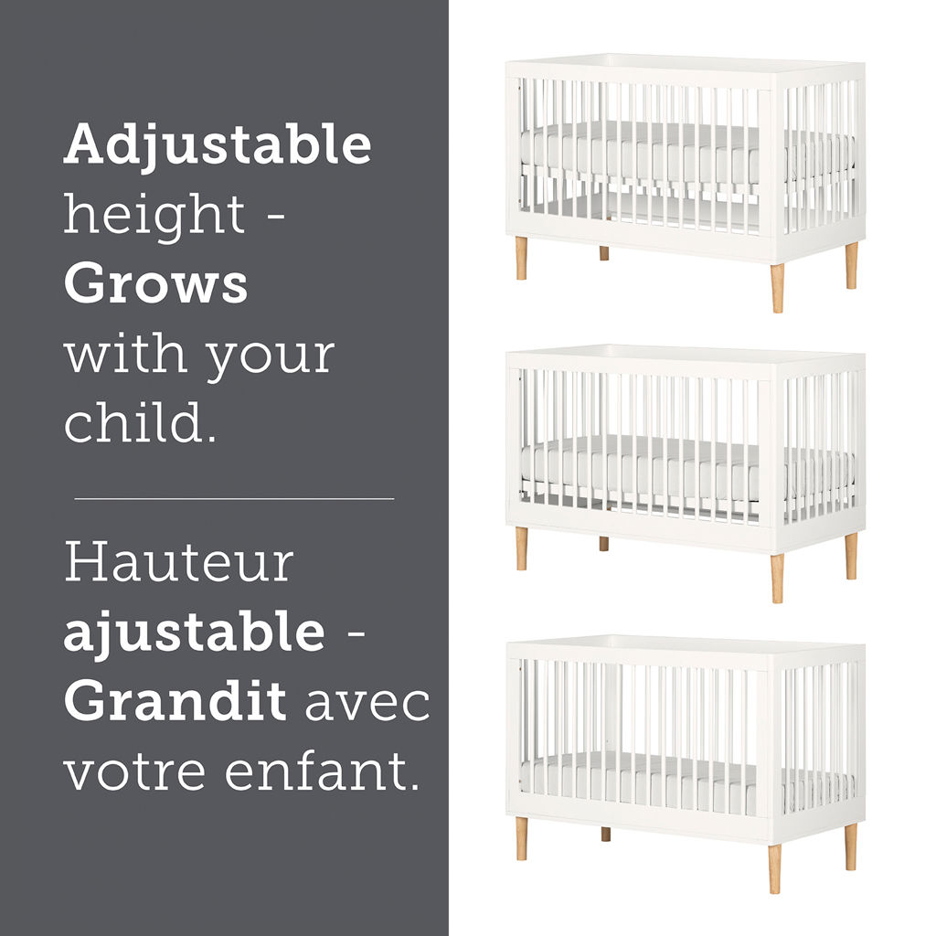 Comme les bébés grandissent super vite, il est important d´opter pour des meubles qui vont perdurer dans le temps. Ce lit de bébé est un véritable 3 en 1! Il est à la fois, une couchette, un lit de transition, et un petit lit sans bord. Il évoluera avec votre enfant, de nouveau-né à bambin! Pour ce faire, vous n´avez qu´à remplacer les barreaux à l´avant par une barre de transition (non-incluse), puis l´enlever une fois que bébé est devenu grand.