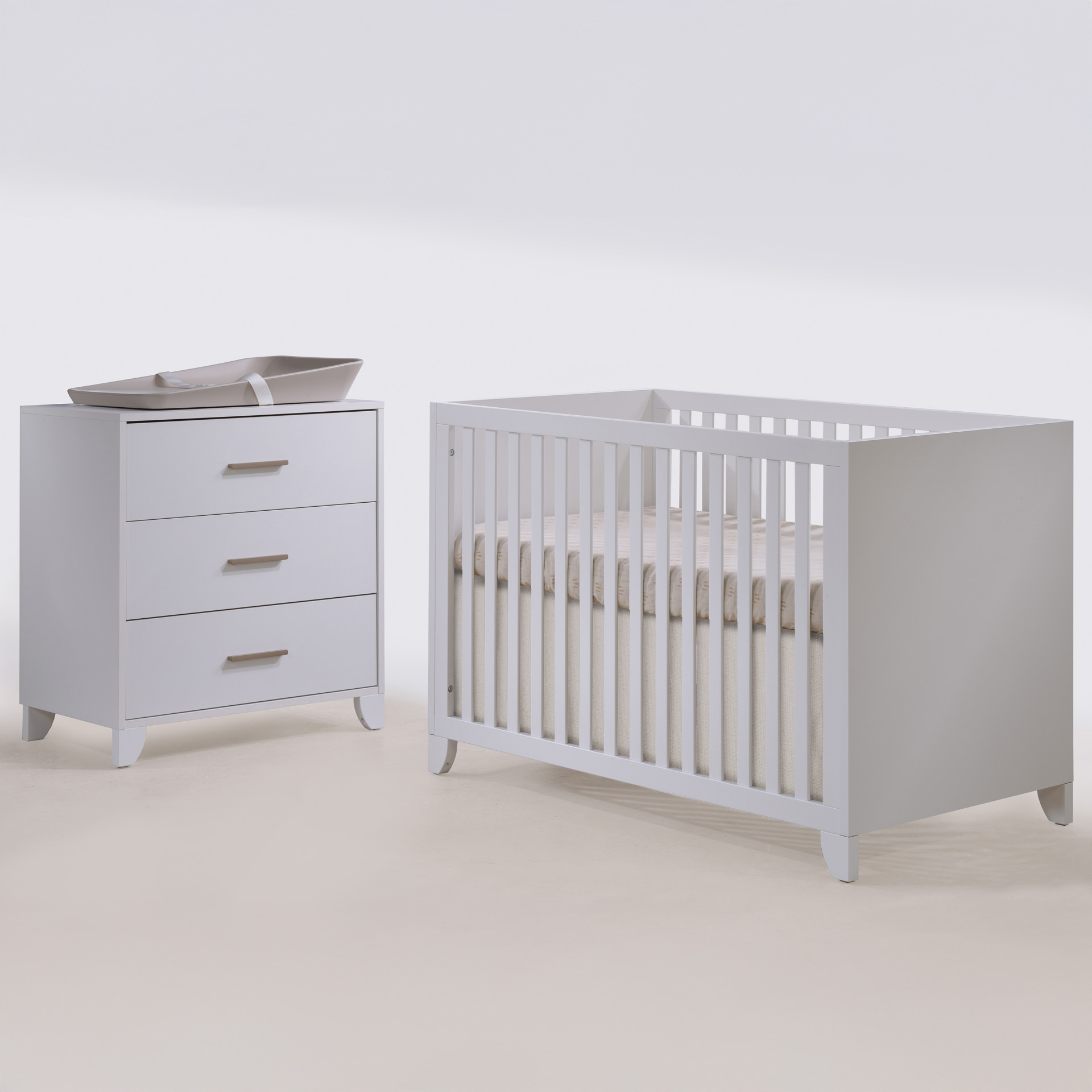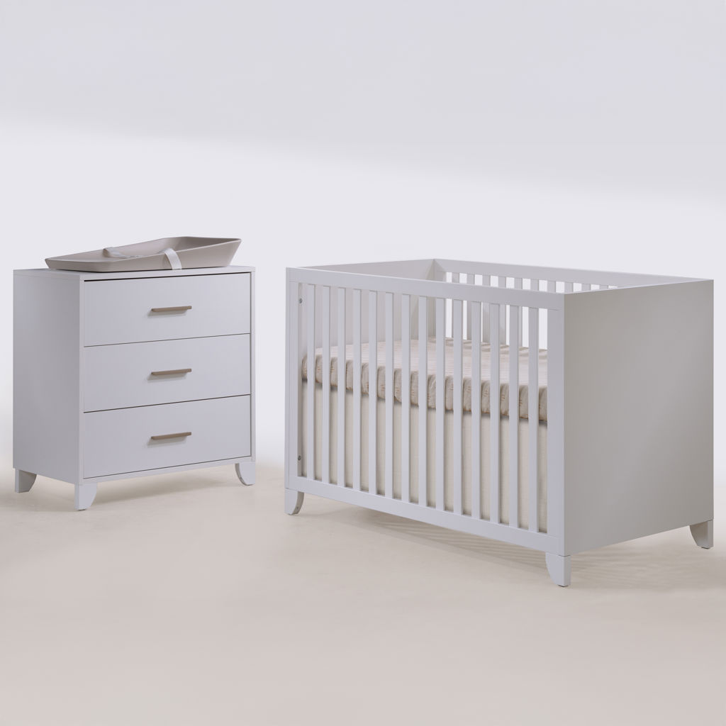 La collection Aiko, peu encombrant, est idéale pour les petites chambres d’enfant. La bassinette Îlot se transforme en lit d’appointe et lit de jour.  Le chiffonnier combinée avec une table à langer Matty de haute qualité offre un espace de change sécure, santé et confortable pour votre bébé et votre jeune enfant.