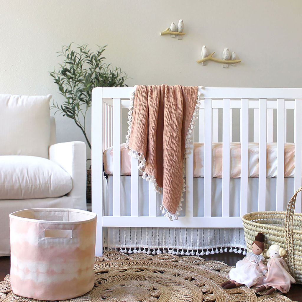 La superbe collection Parker réunit de doux tons émeraude, du tissé velours, des motifs floraux et des imprimés teints par nouage. Saluez la journée qui s´amorce dans un décor enchanteur où se côtoient de jolis objets comme un mobile à papillons et un magnifique tapis de jeu piqué à la main.