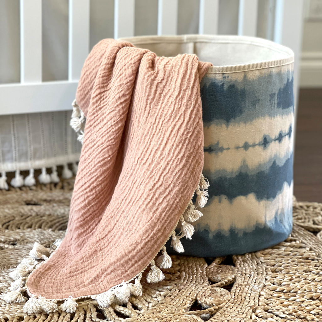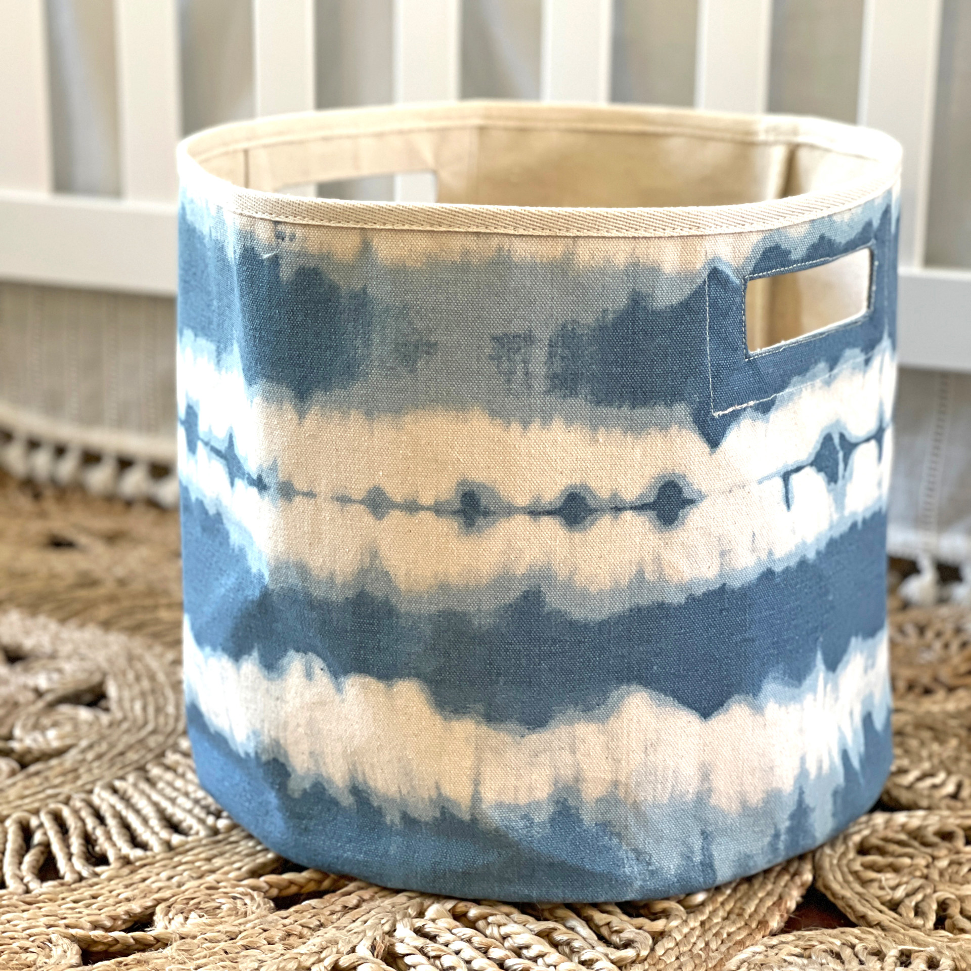 Si la chambre de bébé de vos rêves marie différents tons de bleu, le panier de rangement Caspian s'y intégrera parfaitement. Orné à la main, ce panier qui arbore un superbe imprimé deviendra votre solution de rangement préférée. Il peut contenir des livres, des jouets, des couches et tous les menus objets que vous ne savez pas où ranger.