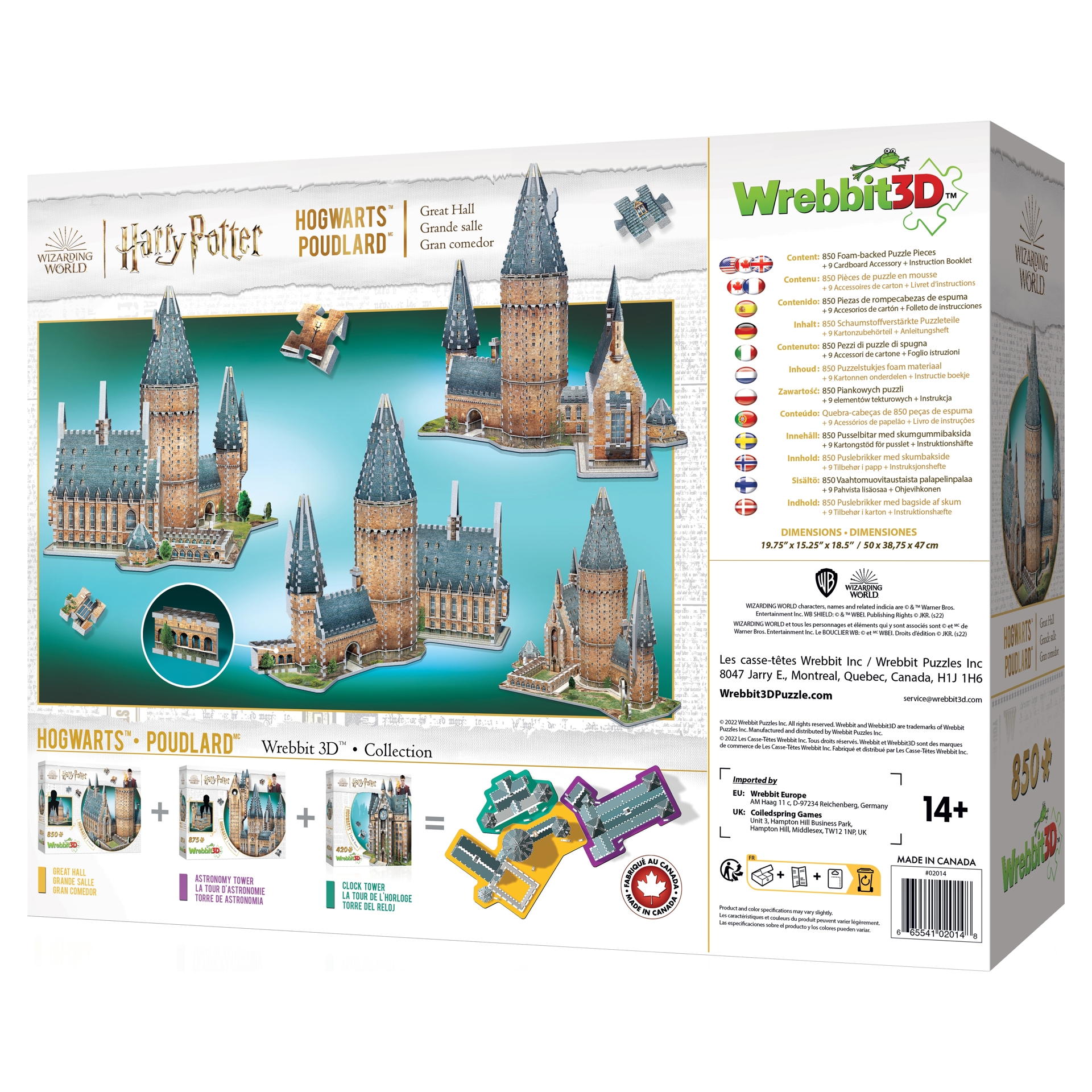 Ce puzzle 3D comprend notamment la tour du bureau d´Albus DumbledoreMC et la Grande Salle, où les apprentis se rassemblent aux repas et aux occasions spéciales.