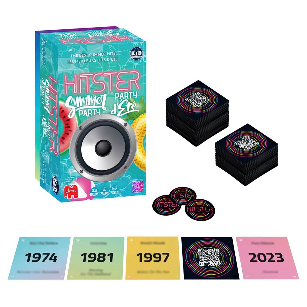 Cette édition est un jeu autonome, mais peut être combinée avec les autres versions de Hitster pour encore plus de plaisir. Alors, sortez les lunettes de soleil et préparez-vous pour une fête estivale inoubliable!