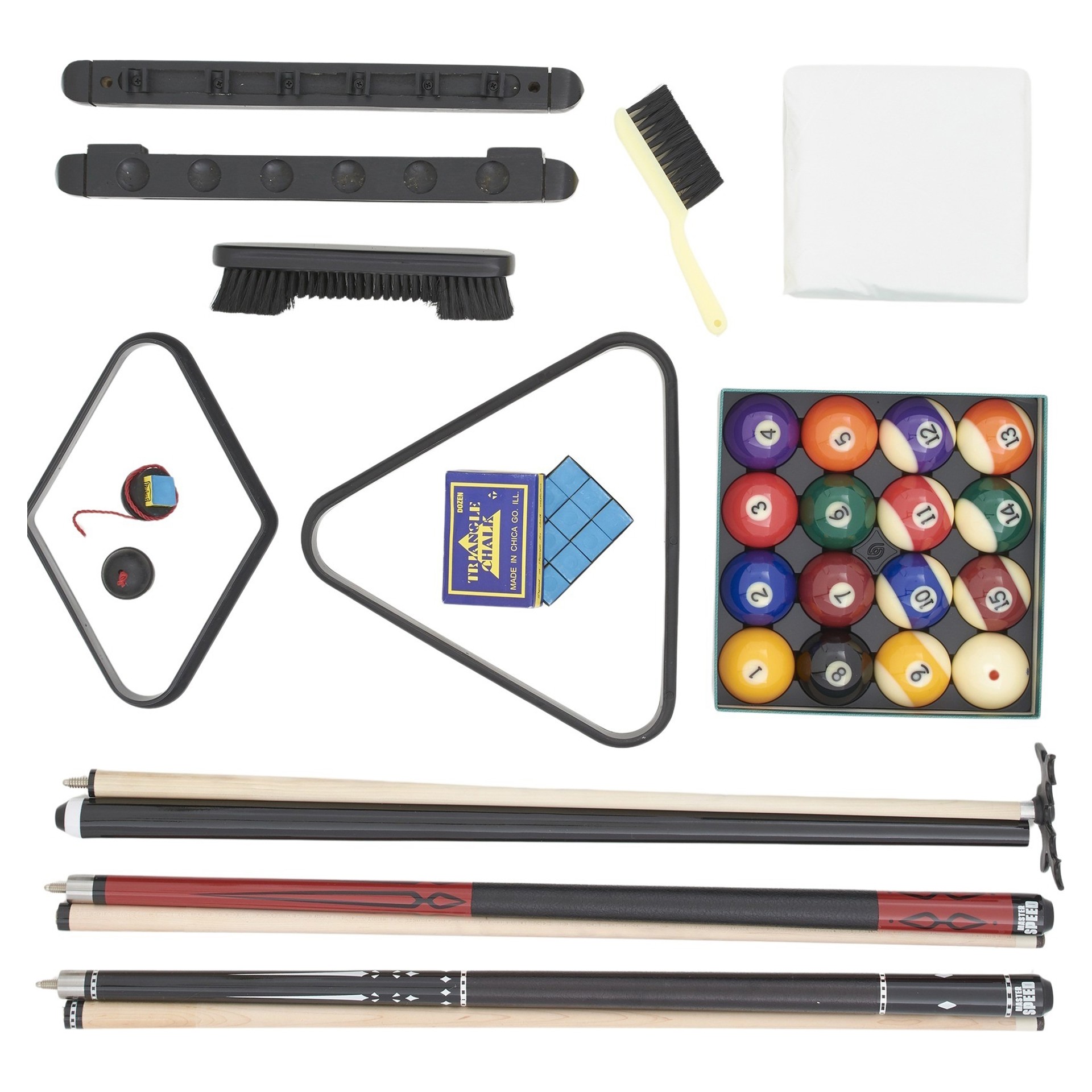 Vous avez la table de billard? Il ne vous manque plus que cet ensemble d’accessoires pour commencer à profiter pleinement de votre salle de jeu. Il comprend 2 baguettes, un ensemble de boules, un râteau, 2 triangles, des brosses et autres accessoires divers qui rendront votre table de billard complètement opérationnelle.