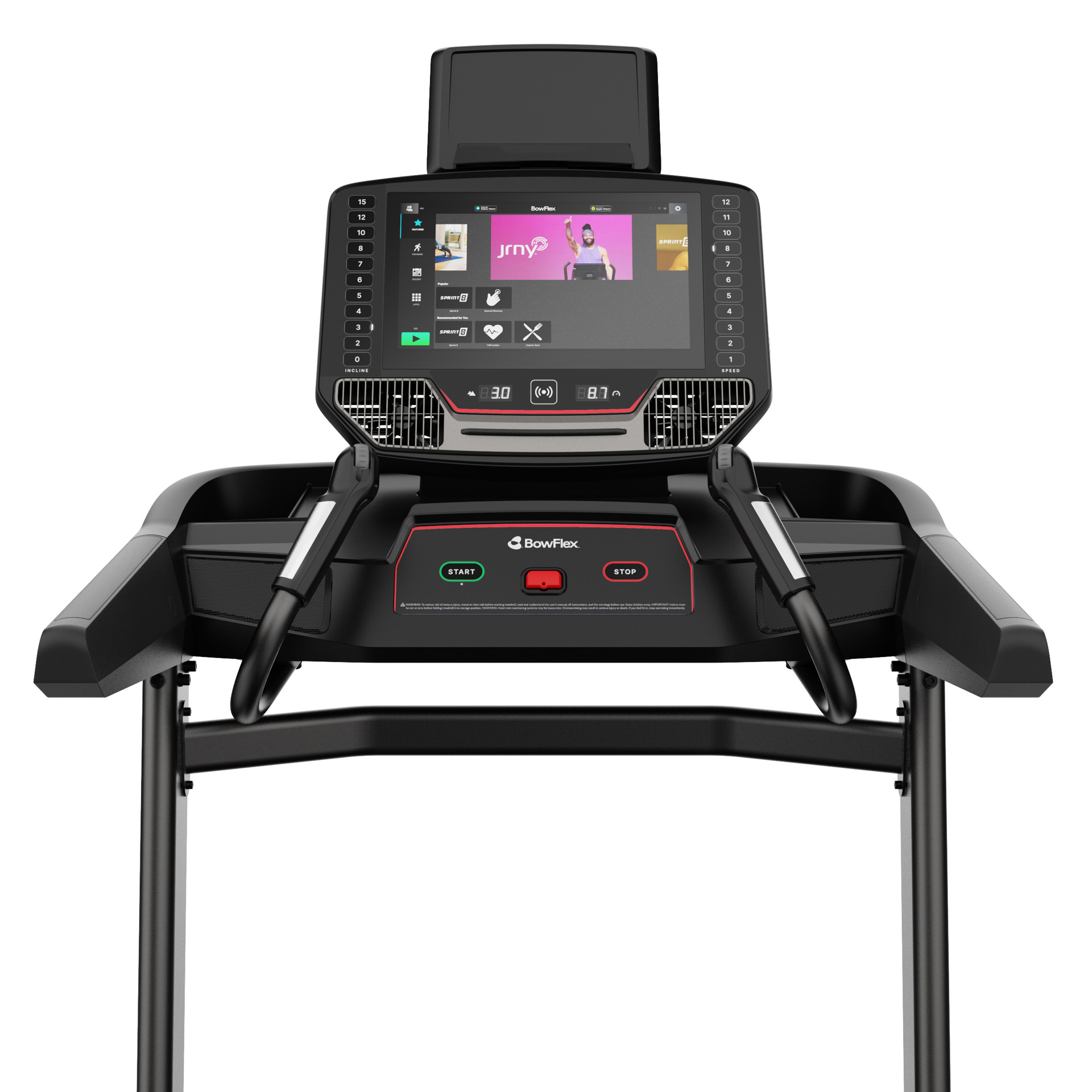 Accédez à tout ce dont vous avez besoin pour rester motivé et vous divertir à partir de l'écran tactile, y compris JRNY® digital fitness, Netflix, Prime Video, Spotify et plus encore.