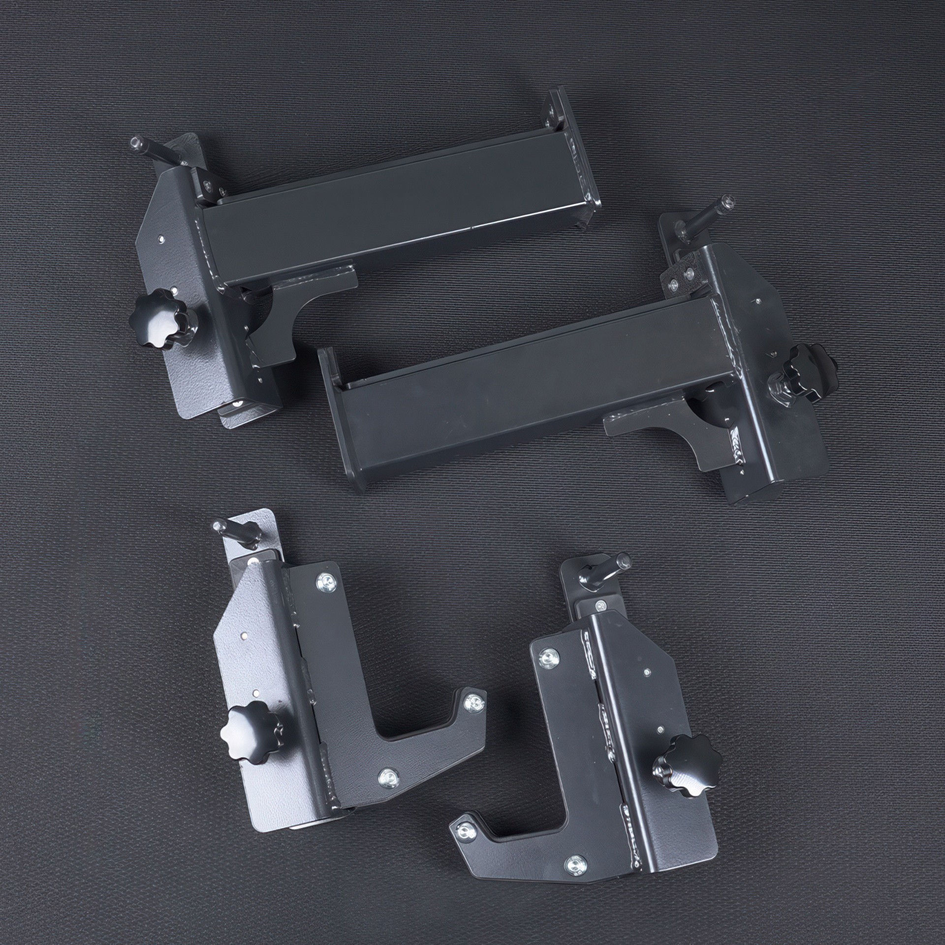 Transformez votre trainer Ironax XFT en demi-rack pour poids libres! Cet accessoire comprend une paire de crochets en J haut de gamme et une paire de bras de sécurité robustes.