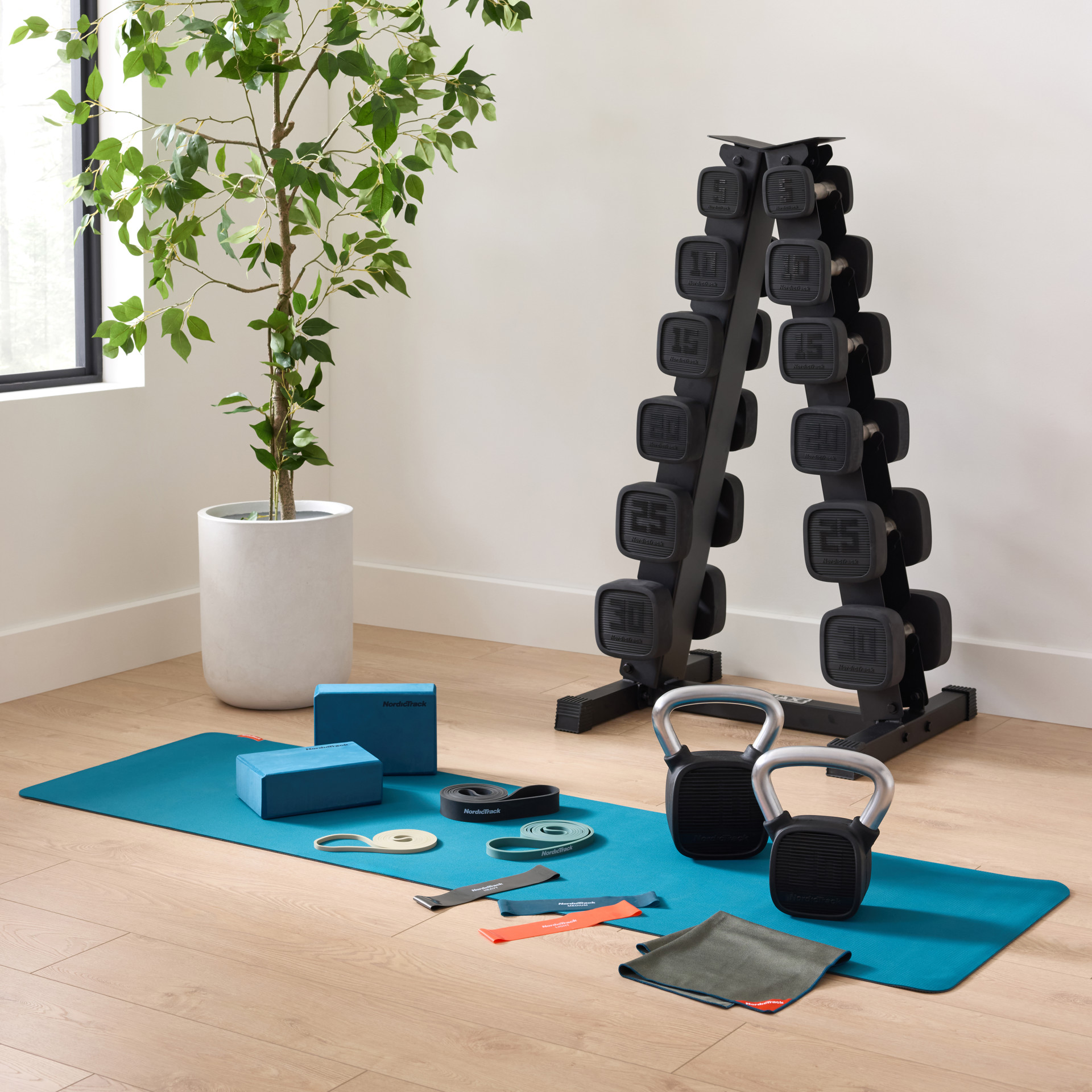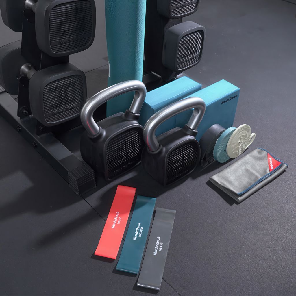 • 2 kettlebells NordicTrack personnalisés (20 lb et 30 lb).