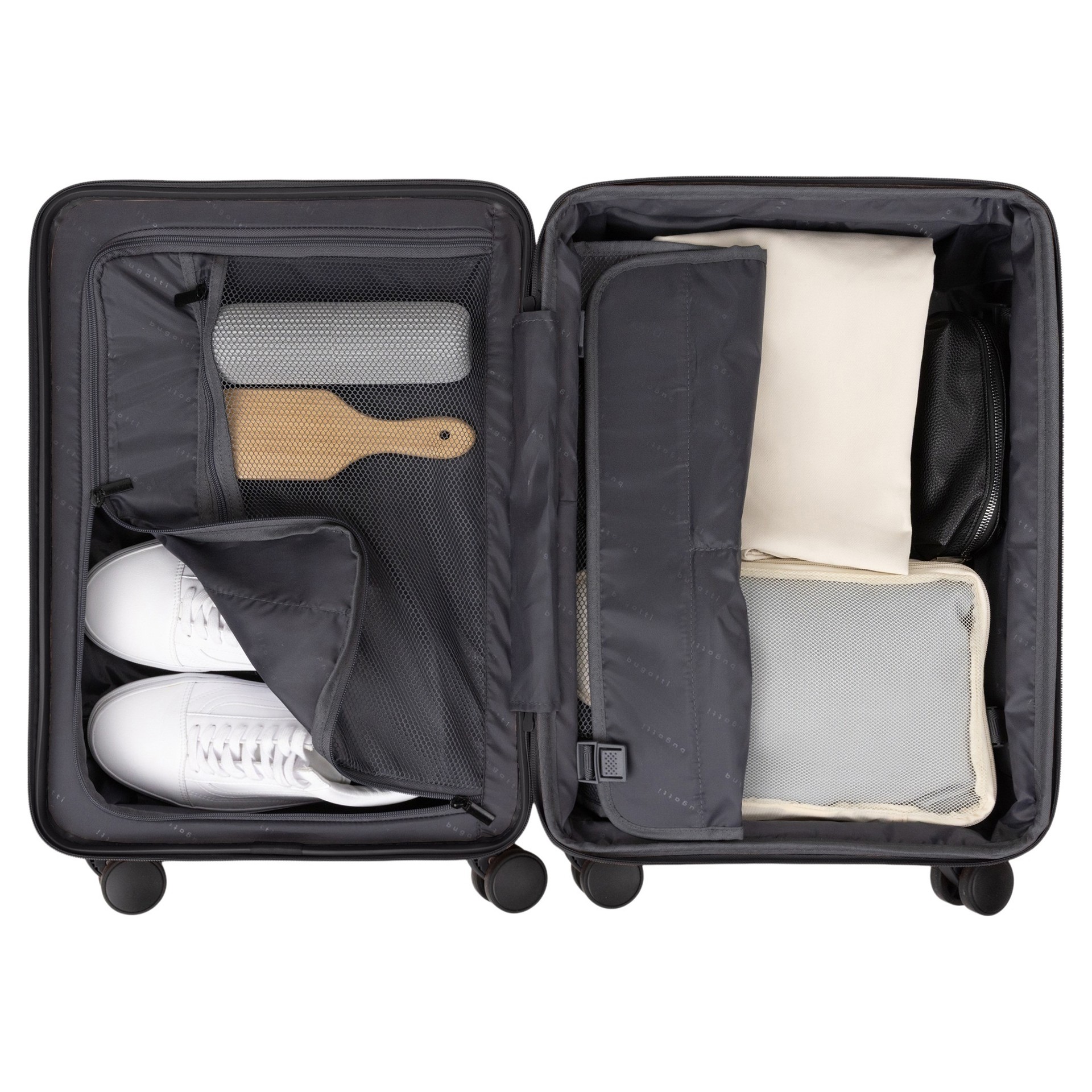 Ces valises sont équipées de 8 roues pivotantes pour un contrôle fluide et précis, ainsi que d'un cadenas TSA pour plus de sécurité.