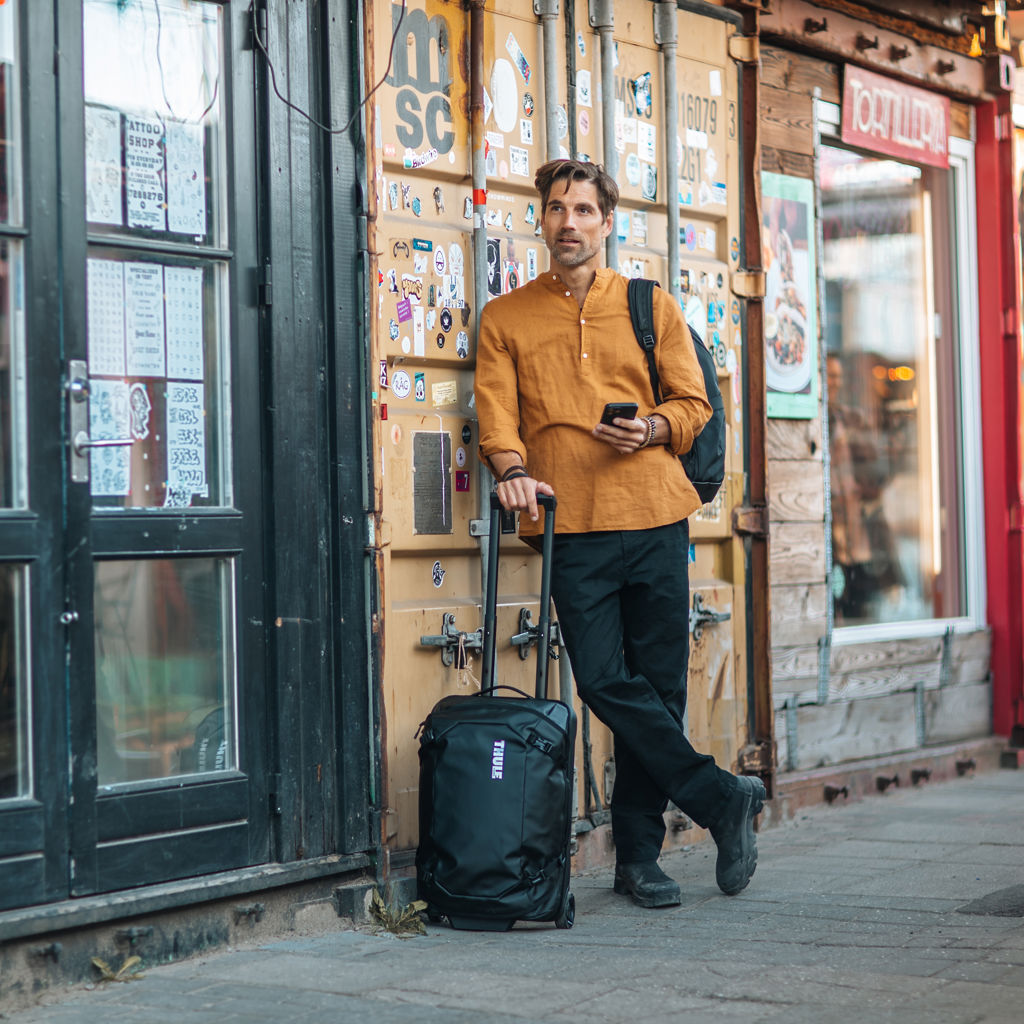 • Le sac absorbe l’impact du voyage grâce à un panneau arrière en polycarbonate moulé