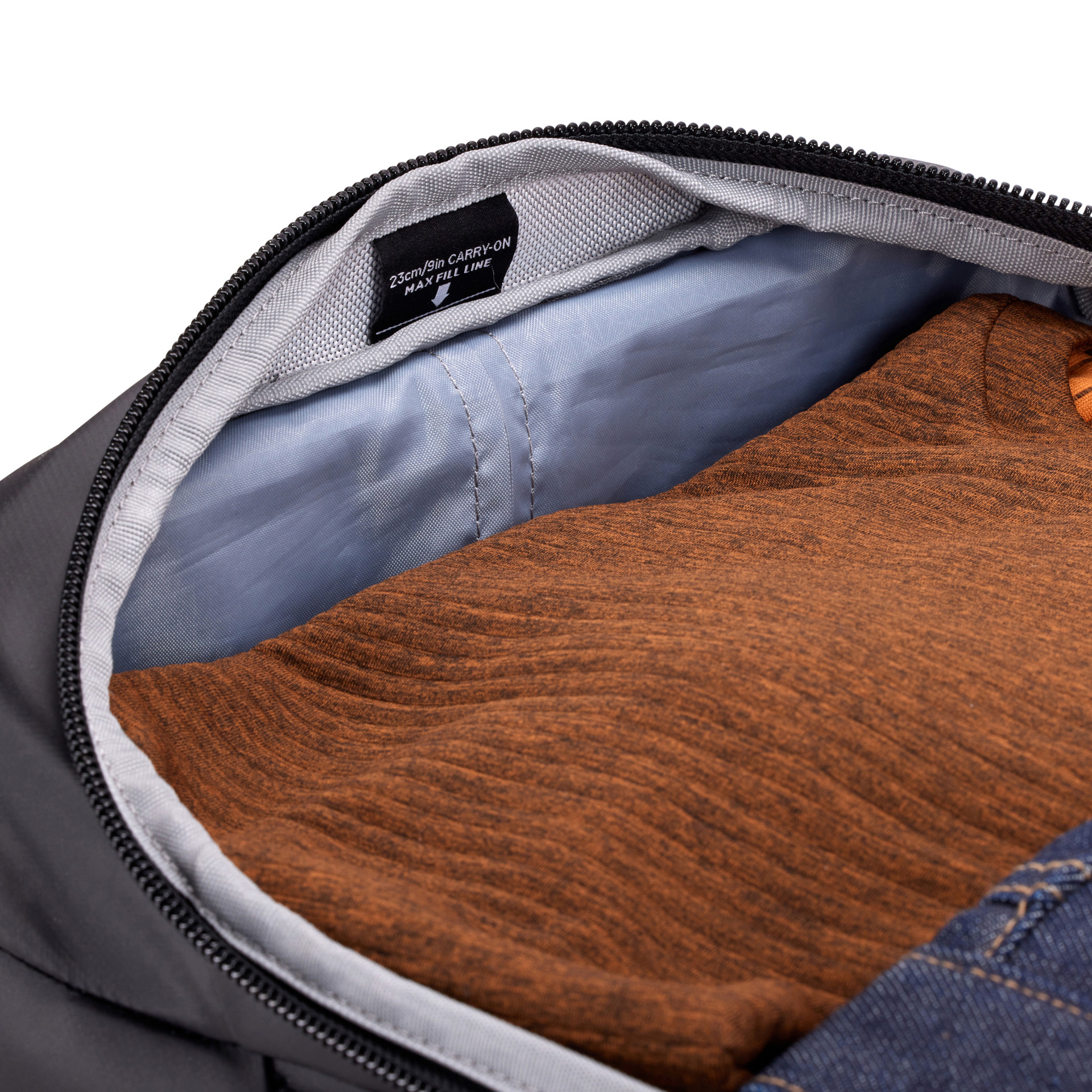• Profitez d’un espace de rangement supplémentaire de 5 cm/2 po lorsque vous voyagez sans exigences sur la taille de sac