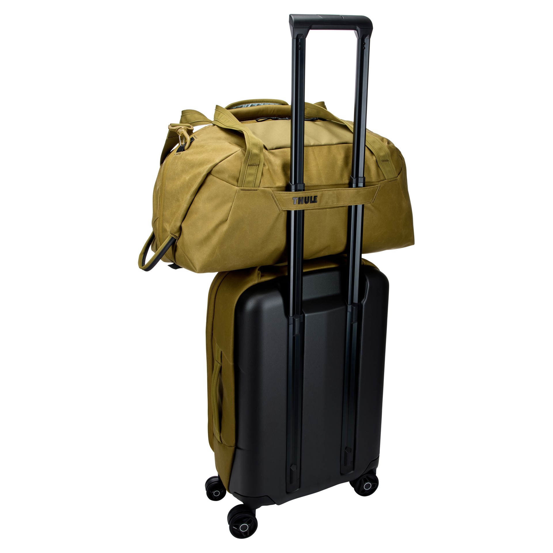 • Le panneau traversant permet de fixer le polochon au bagage sur roulettes