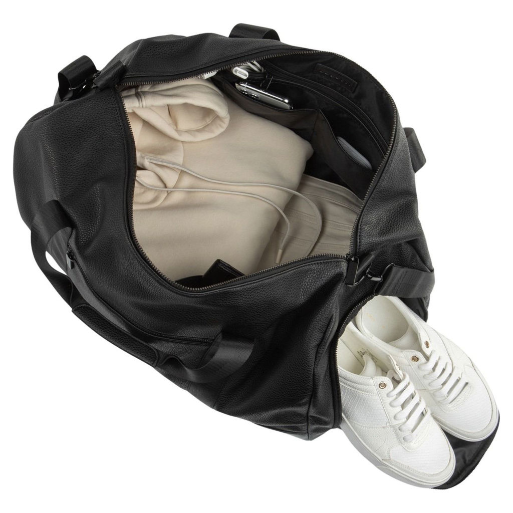 Fabriqué avec du cuir végétalien texturé, ce sac de sport est non seulement élégant, mais également durable avec un grand compartiment principal et une fermeture à glissière sur le dessus, vous pouvez facilement ranger tous vos essentiels pour une escapade d'un week-end ou un voyage d'une nuit.