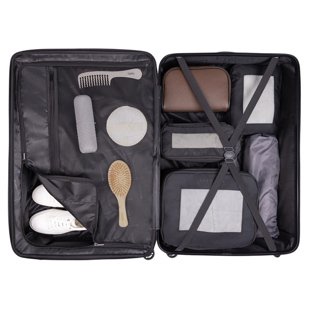 • Séparateur, poches en filet pratiques et sangles de serrage
