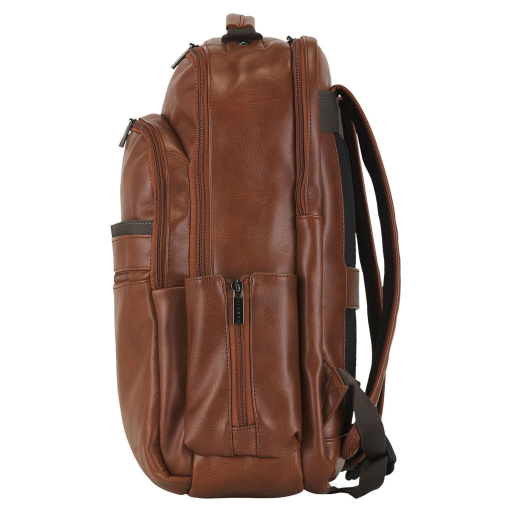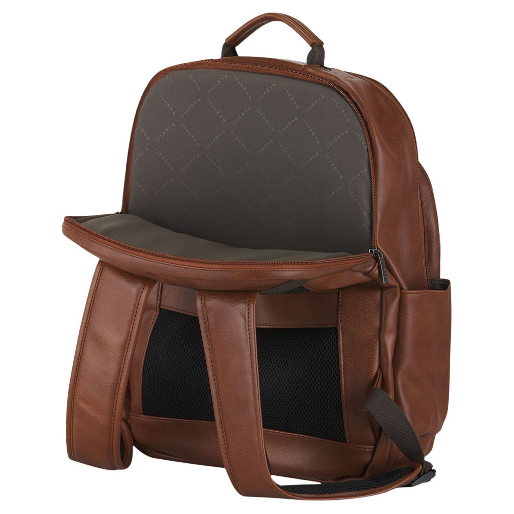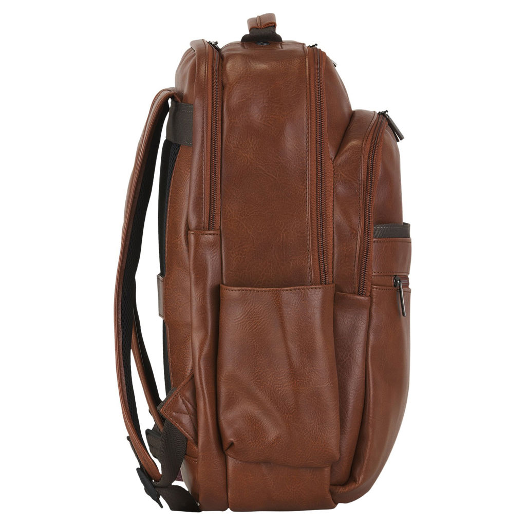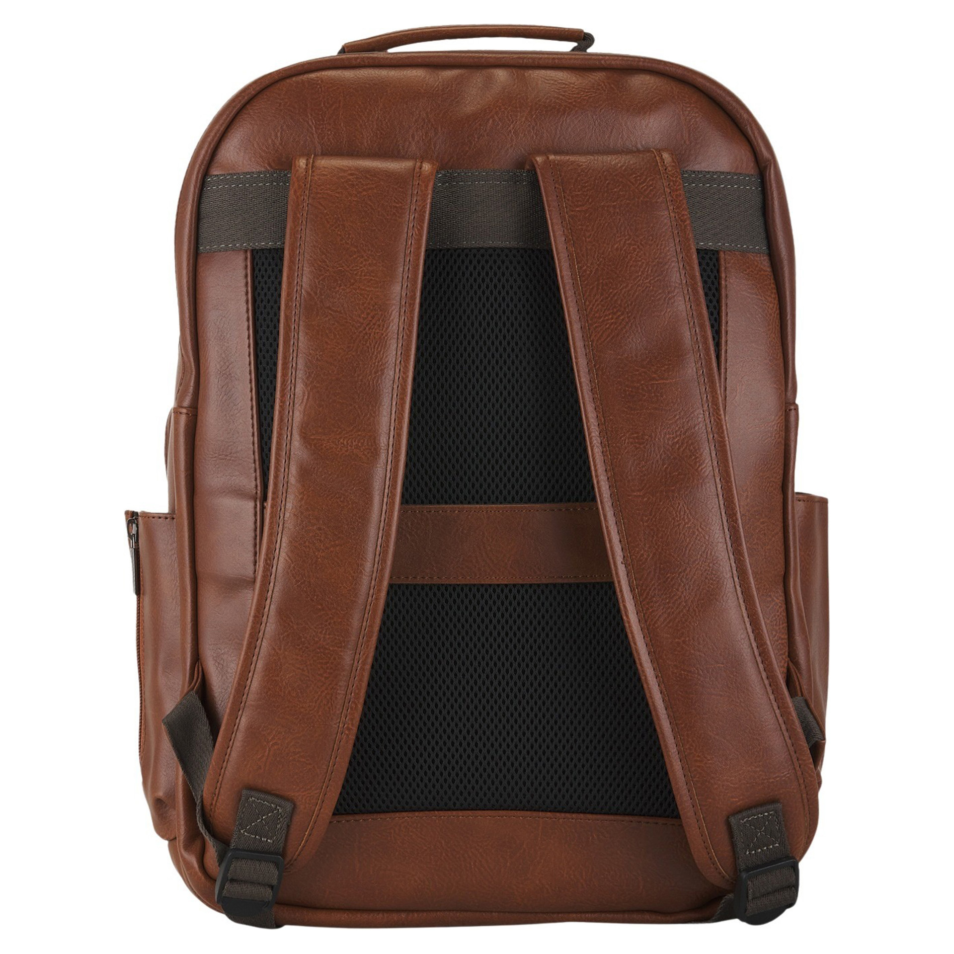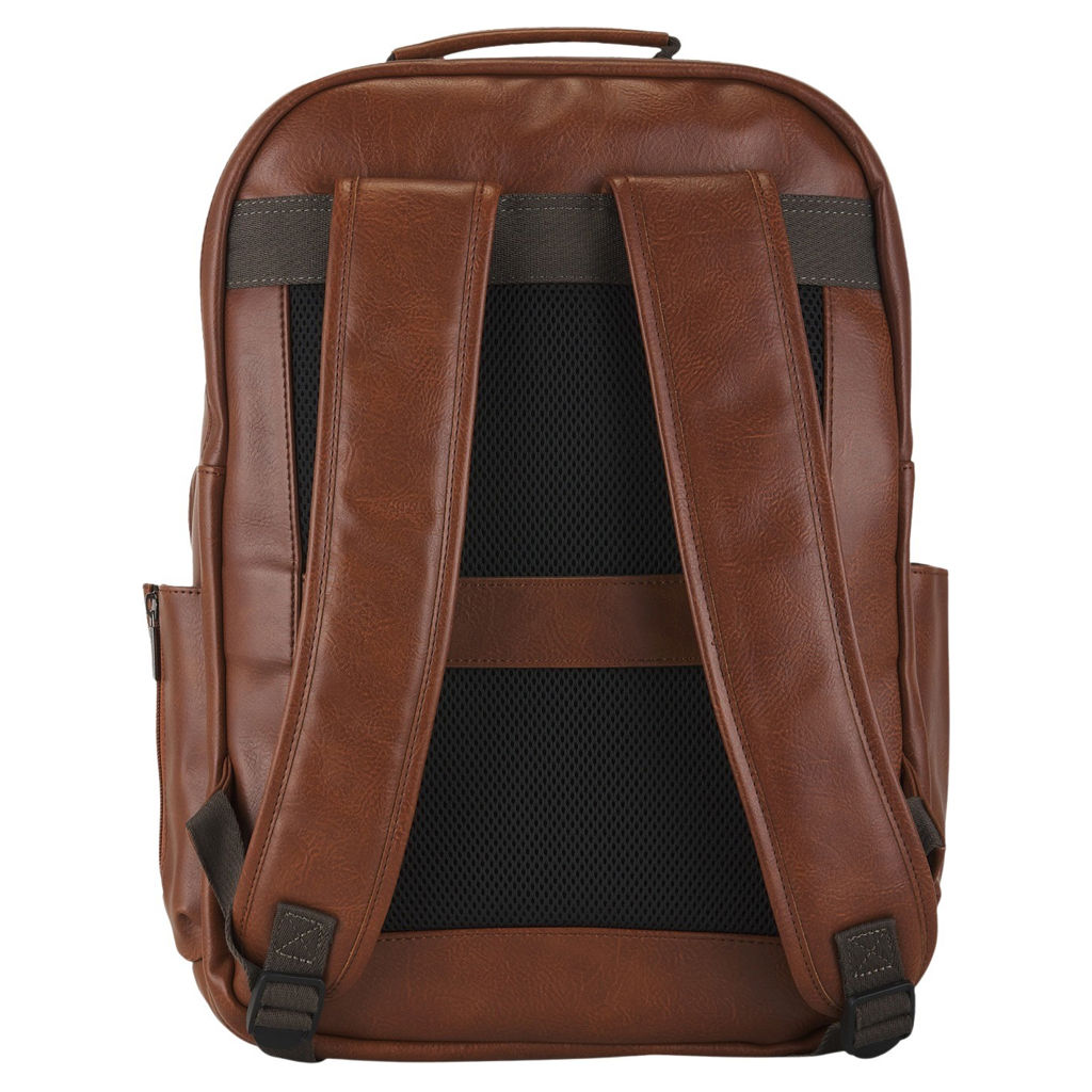 Fabriqué avec une combinaison de polyester et de garnitures en cuir végétalien, ce sac à dos respire le style et la durabilité.