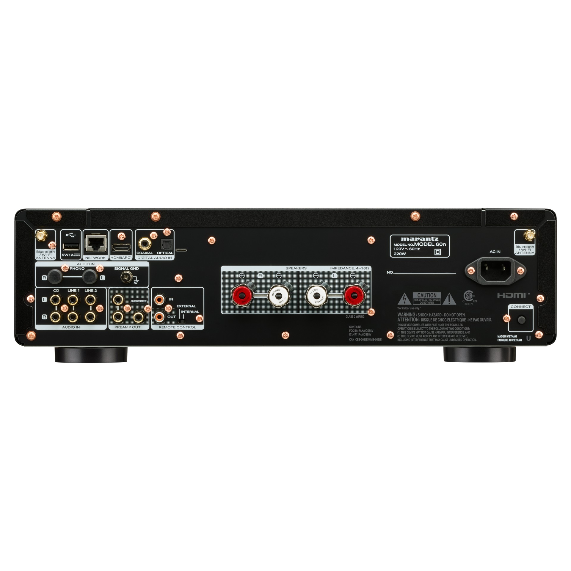 Le MODEL 60n offre une multitude d'options de connectivité pour vous permettre de profiter d'une expérience d'écoute supérieure, que vous connectiez une platine vinyle, un lecteur CD ou un téléviseur, ou que vous accédiez à la diffusion en continu haute résolution via HEOS® Built-in. Grâce à ses caractéristiques avant-gardistes, cet amplificateur réseau intégré polyvalent et élégant sera au centre de votre univers d'écoute pour les années à venir.