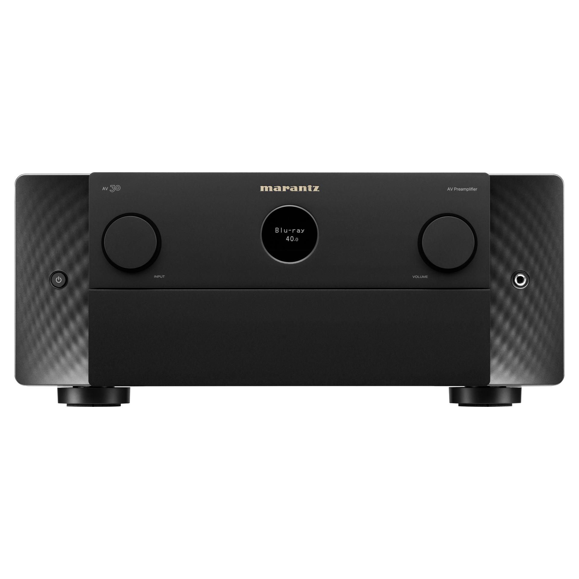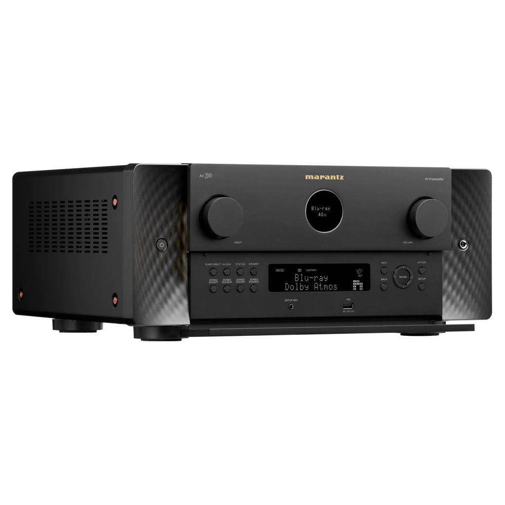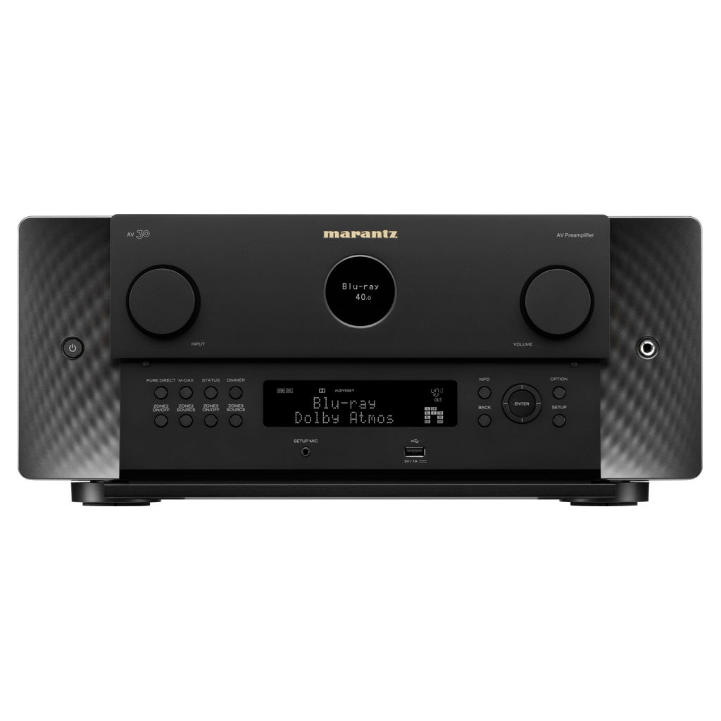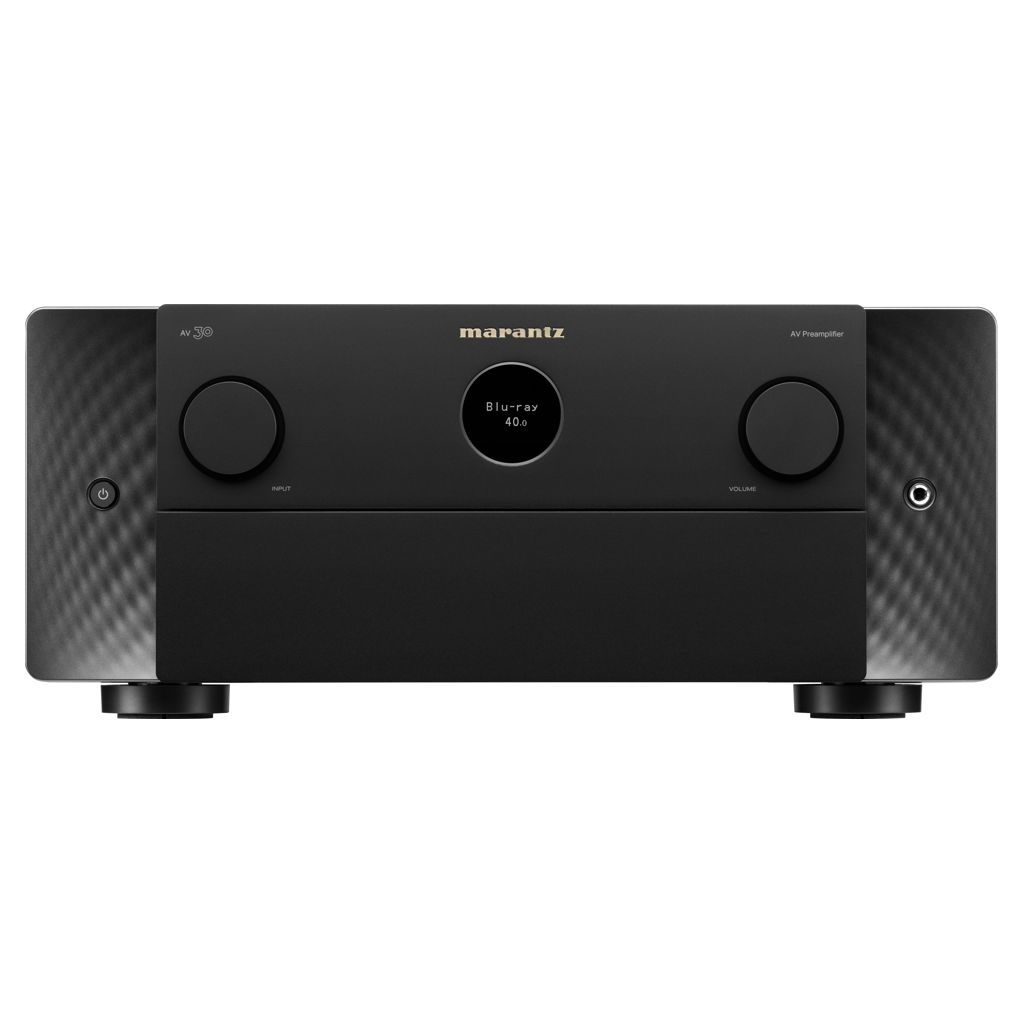 Expression moderne de principes de design intemporels, l'AV 30 arbore le hublot emblématique de Marantz, des matériaux haut de gamme et des éclairages latéraux discrets qui illuminent le panneau avant.