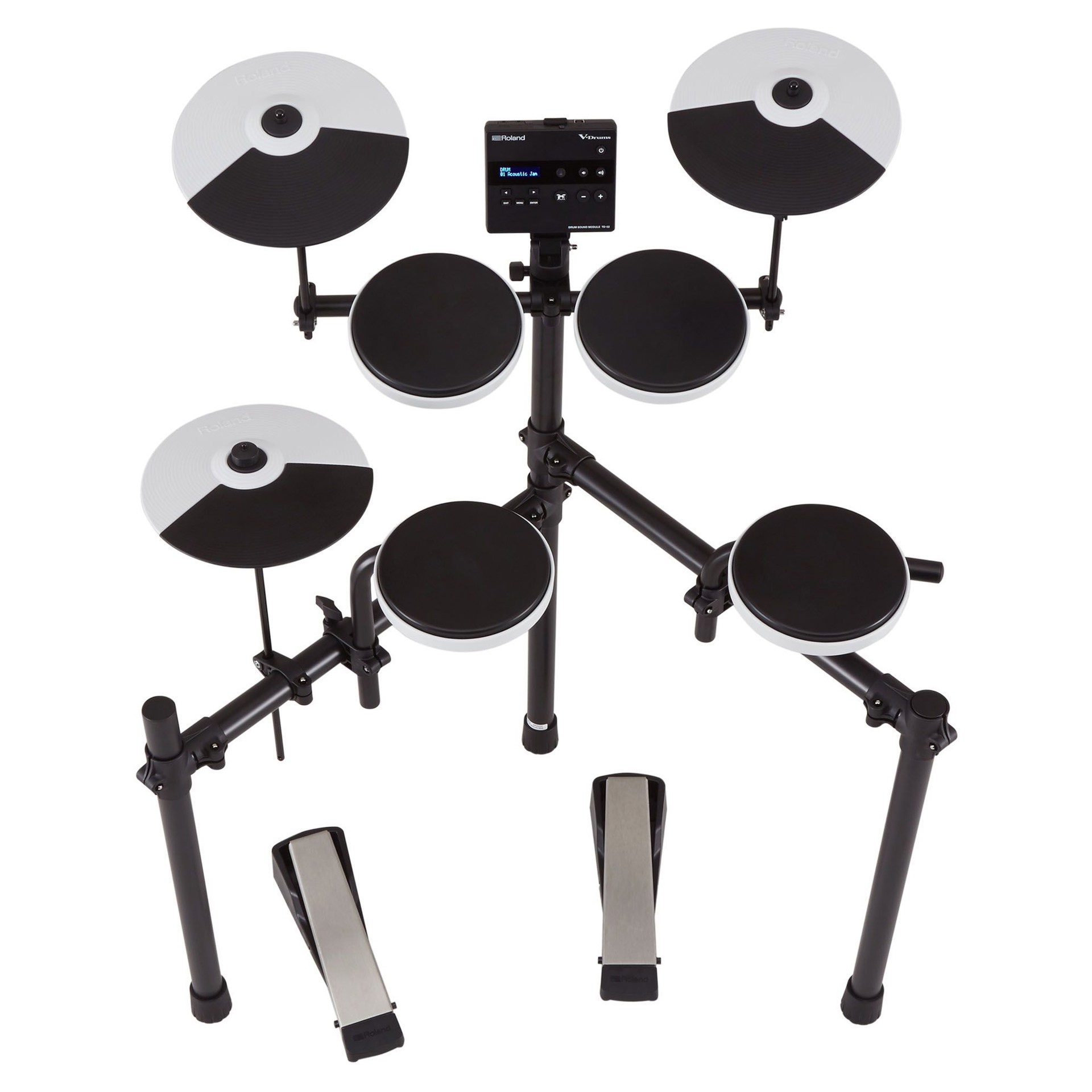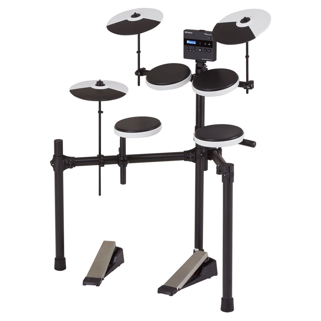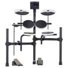 Le TD-02K est le kit le plus compact de la série. Il comprend un pad de caisse claire, trois pads de tom, une pédale de grosse caisse silencieuse sans batte, trois pads de cymbale (hi-hat, crash et ride) et un support unique réglable en hauteur, idéal pour les jeunes joueurs.