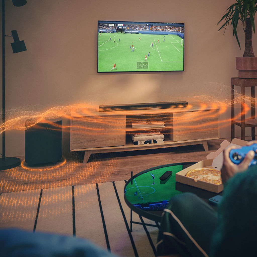 Où que vous soyez assis, vous serez au cœur de l’action. Notre MultiBeam™ 3.0 offre un bain sonore large et digne d’une salle de cinéma, qui donne vie à toutes les scènes les plus épiques de combat ou de poursuite effrénée. Les faisceaux sonores remplissent parfaitement votre pièce, offrant une reproduction sonore véritablement immersive, réaliste et naturelle.
