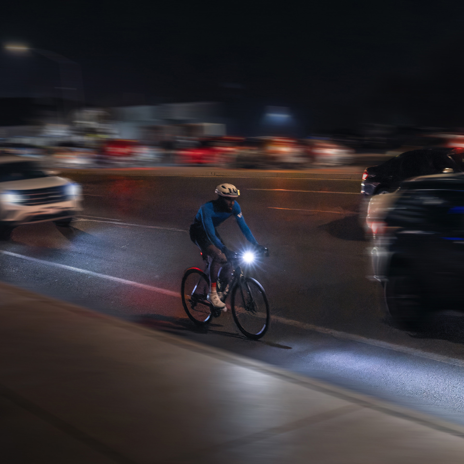 Le phare intégré dispose de modes d'éclairage variables et d'un contrôle automatique de la luminosité qui s'adapte à votre vitesse et aux conditions d'éclairage.