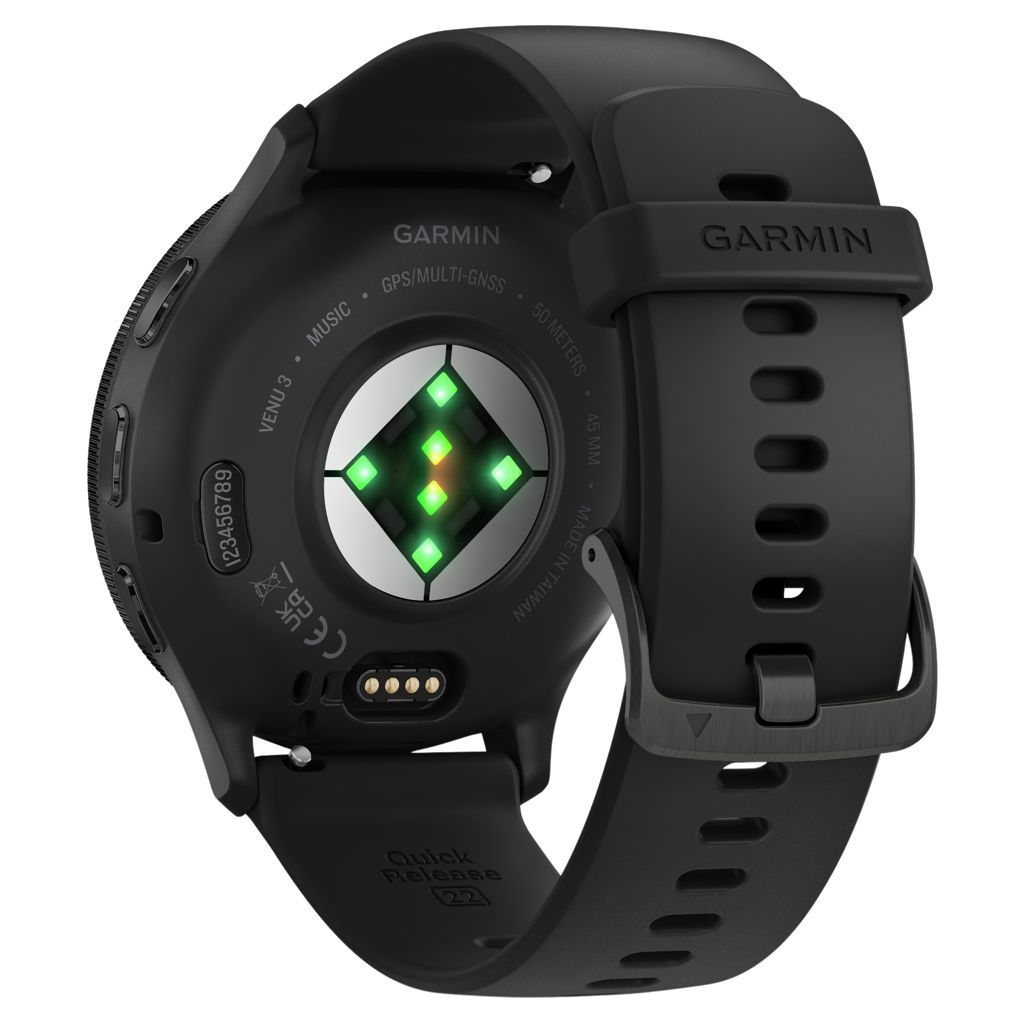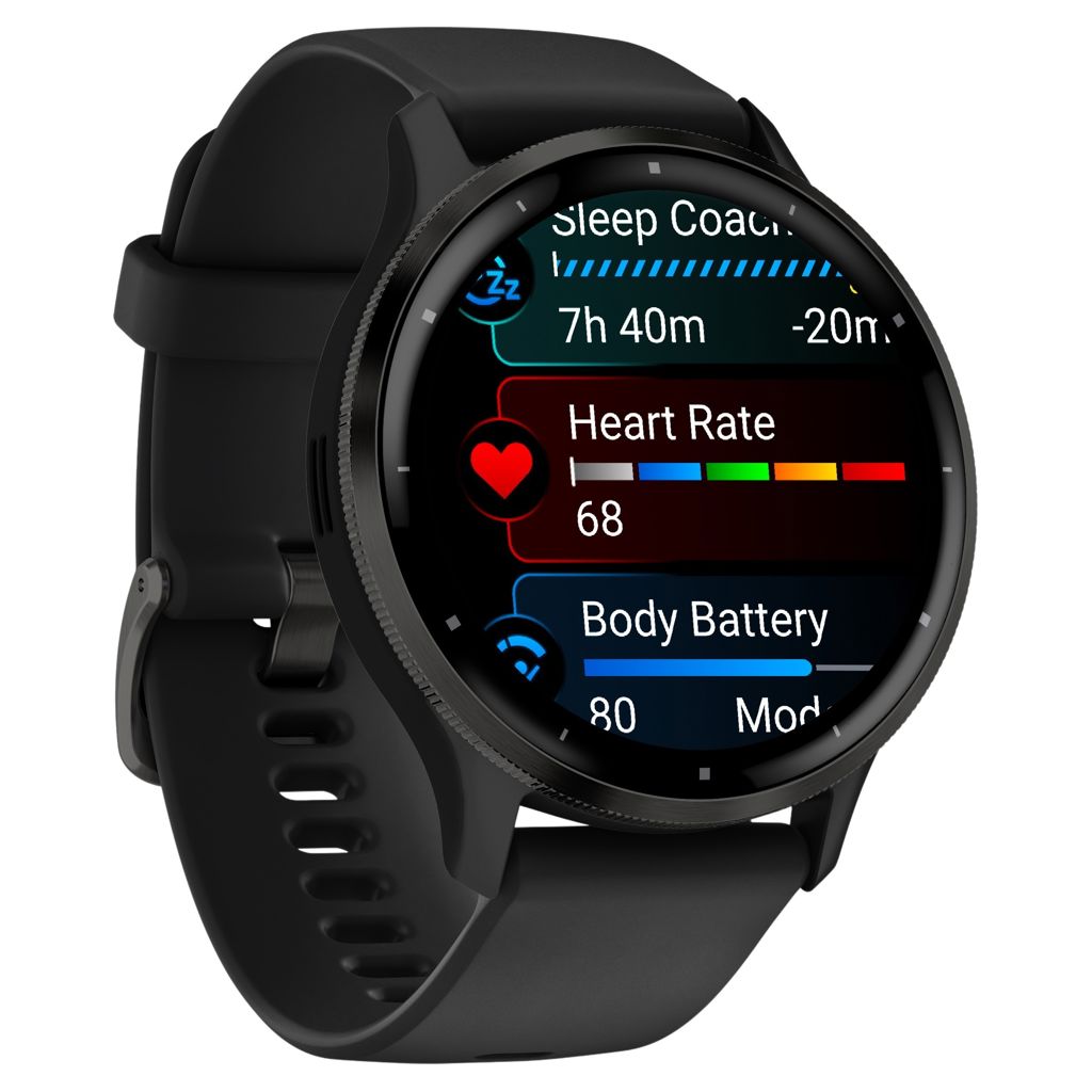 Spécialement conçue avec des fonctions avancées de santé et de fitness et la possibilité de passer des appels et d'envoyer des SMS, la Venu 3 est bien plus qu'une simple montre connectée : c'est votre coach personnel au poignet qui vous accompagne dans tous vos objectifs.