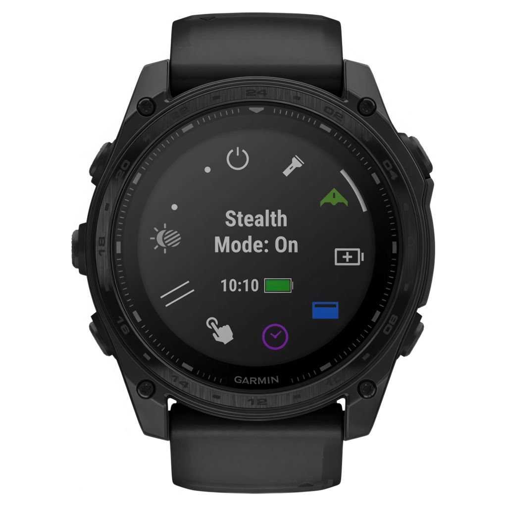 Les fonctionnalités tactiques dédiées incluent une activité Jumpmaster, une projection de points de cheminement, un format GPS à double position, un mode furtif, un coupe-circuit, une compatibilité avec les lunettes de vision nocturne et une activité de randonnée.