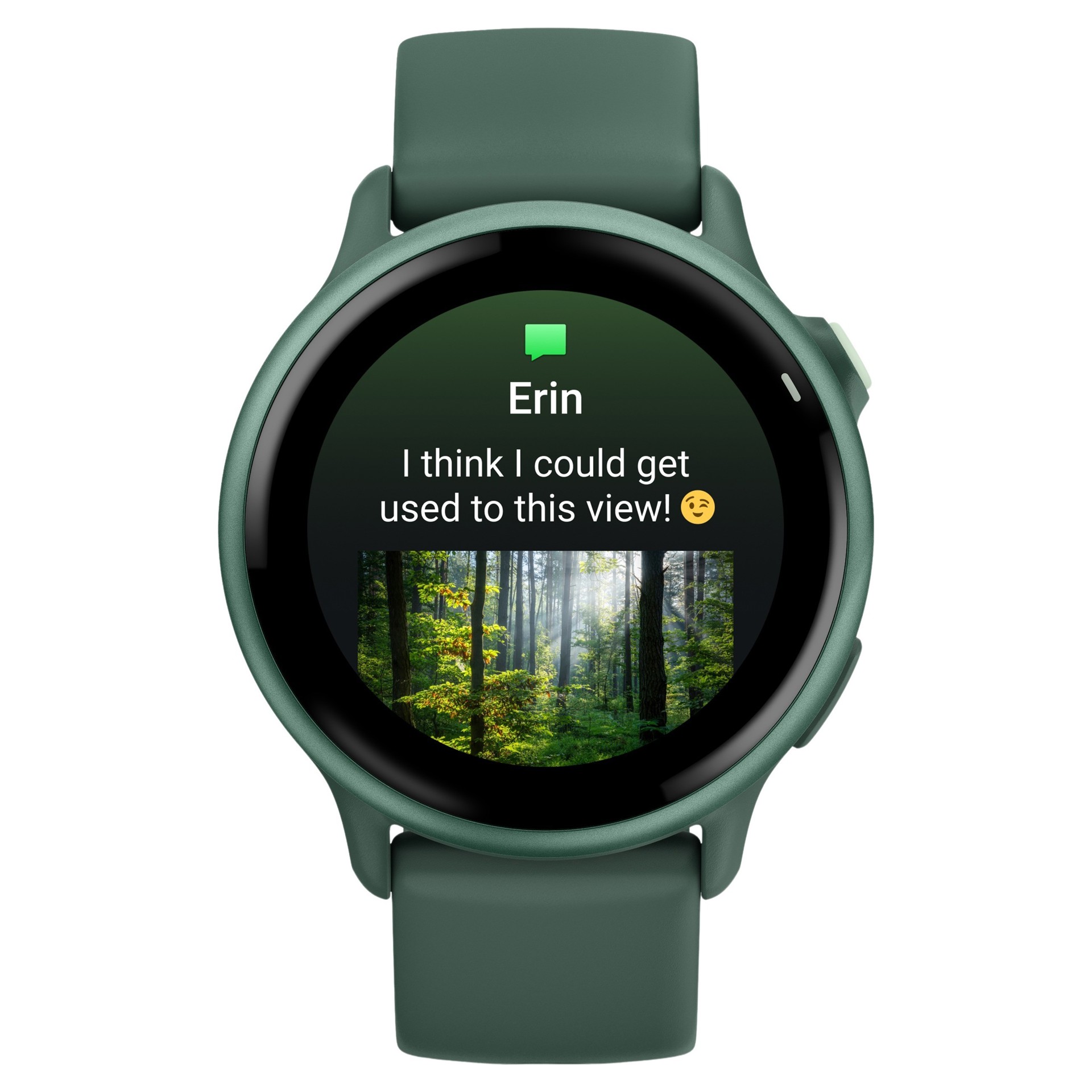 Recevez des e-mails, des SMS et des alertes sur votre montre connectée à votre iPhone ou smartphone Android. Avec un téléphone Android, répondez aux SMS avec le clavier intégré et visualisez les photos qui vous sont envoyées directement depuis l'écran de votre montre.