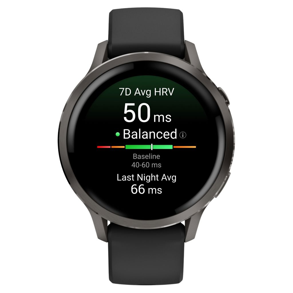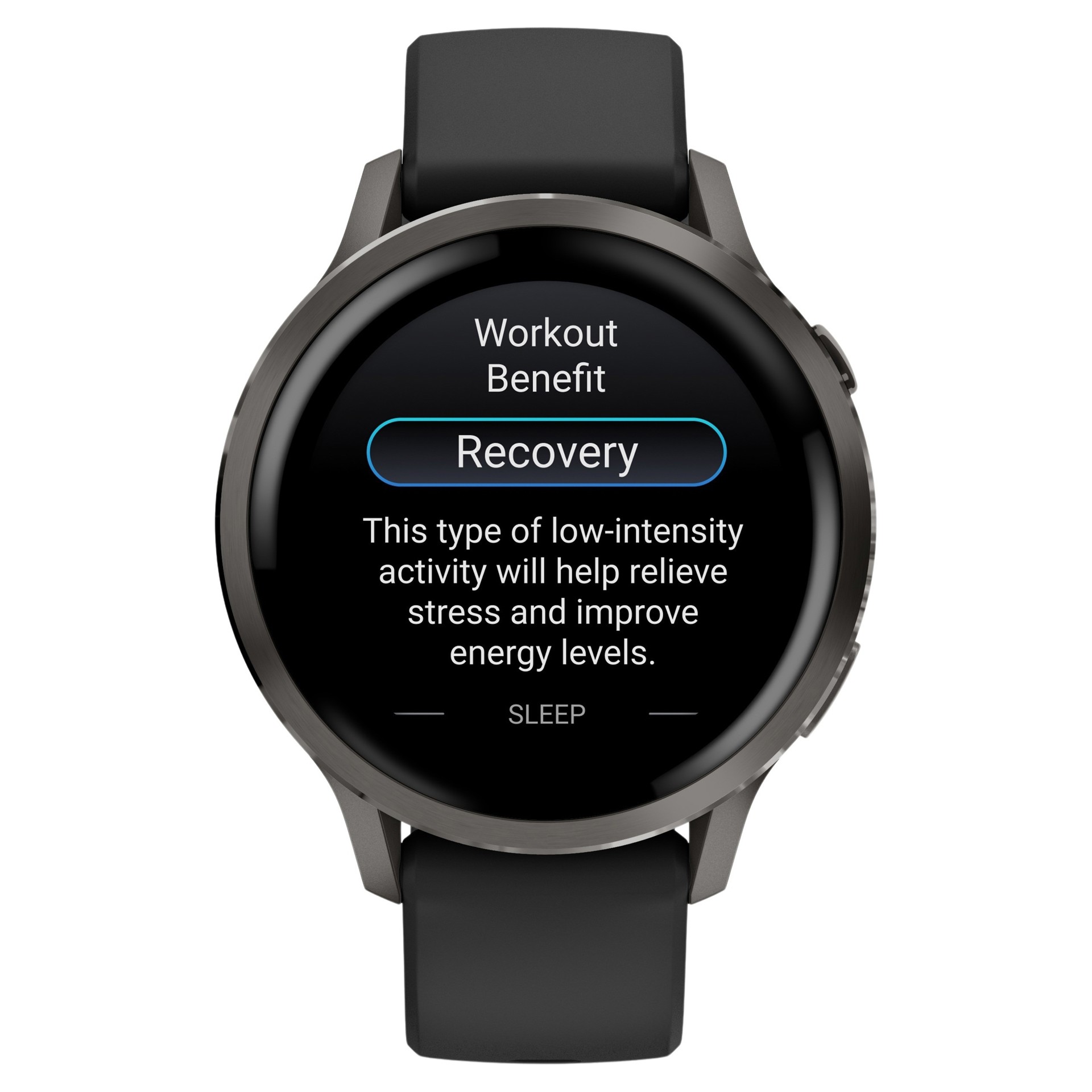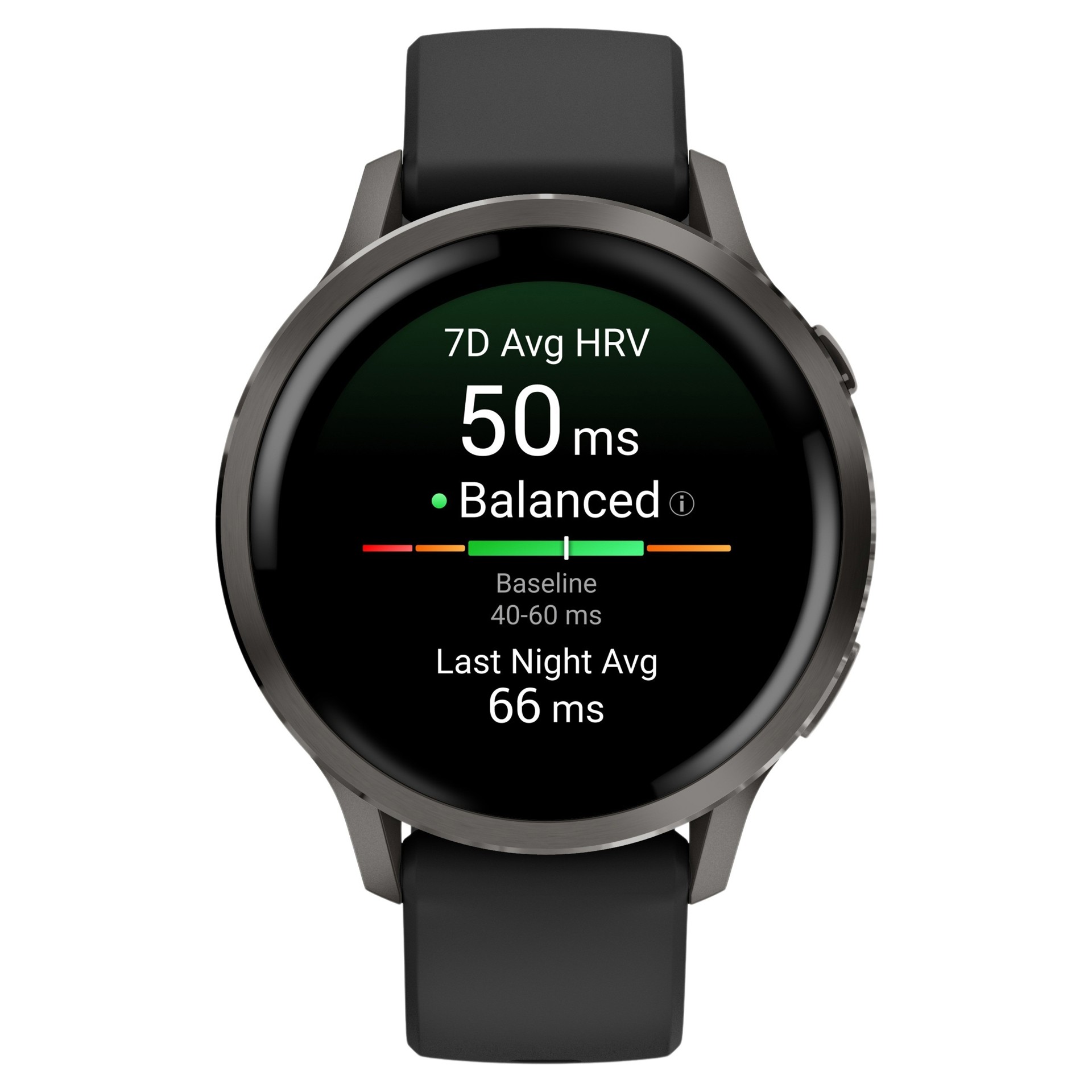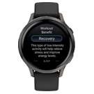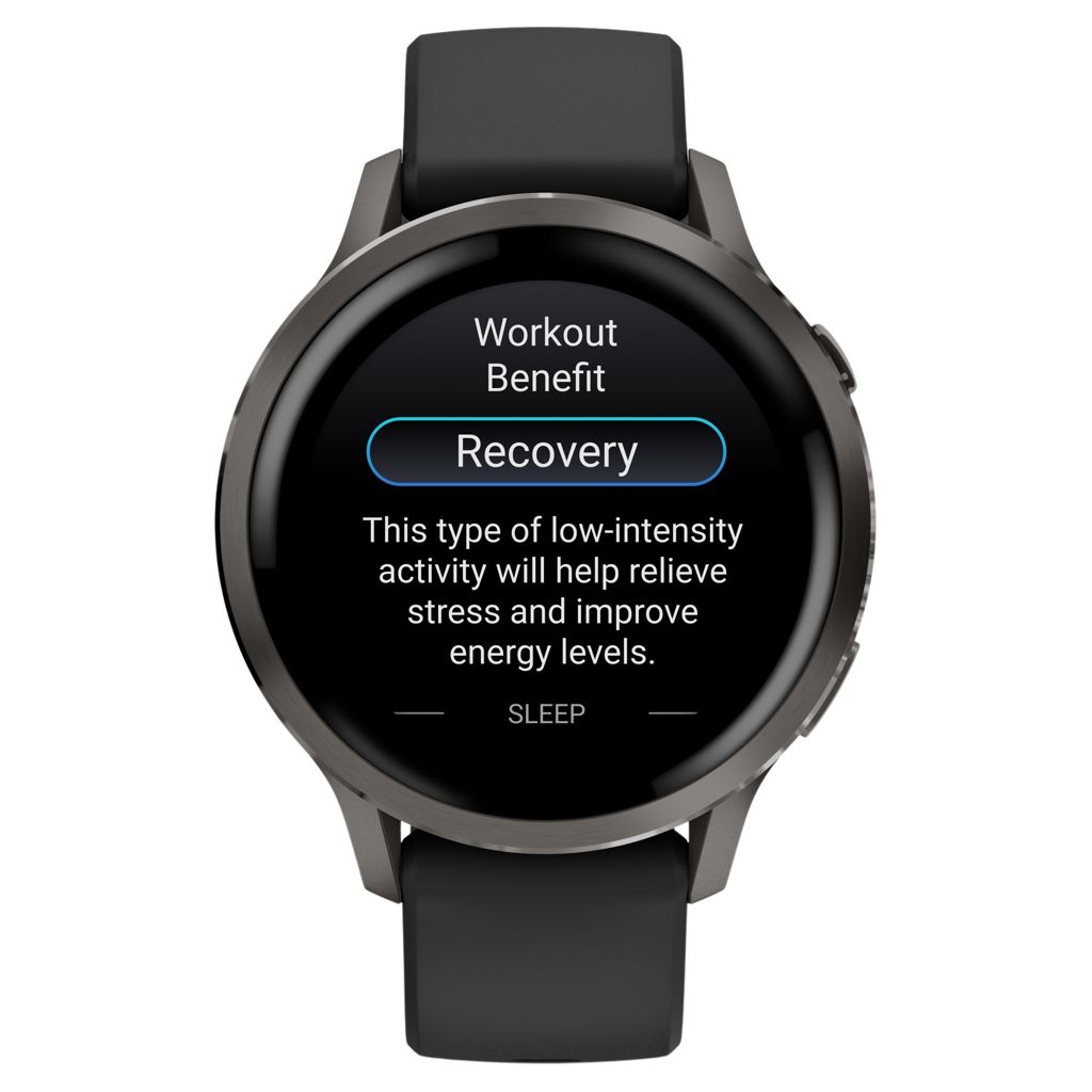 Adoptez un mode de vie plus équilibré grâce à des fonctions complètes de suivi de santé, telles que : le suivi d'énergie Body Battery™, le stress, l'oxymètre de pouls et le suivi de santé féminine y compris les estimations d'ovulation passées, et bien plus encore.