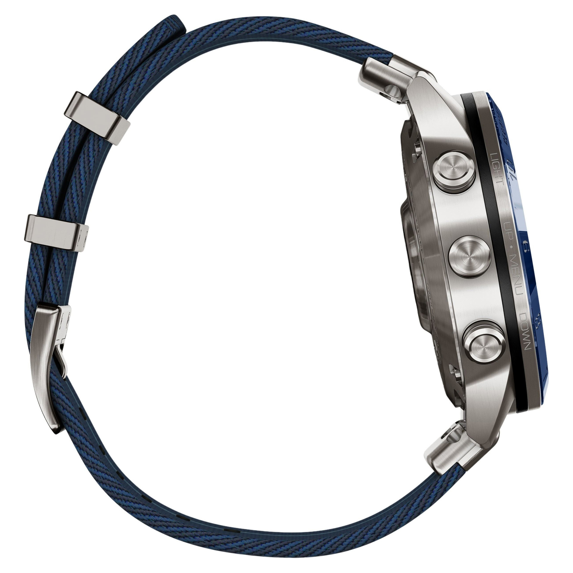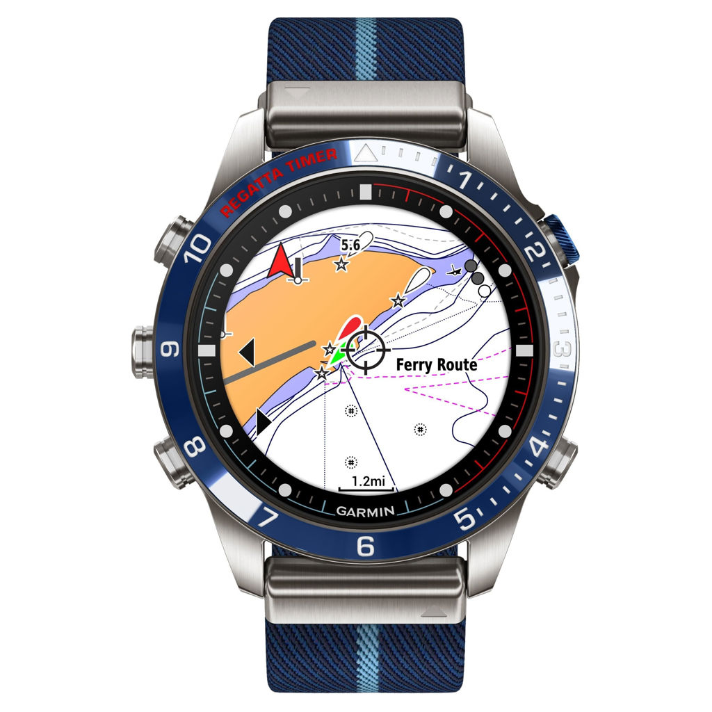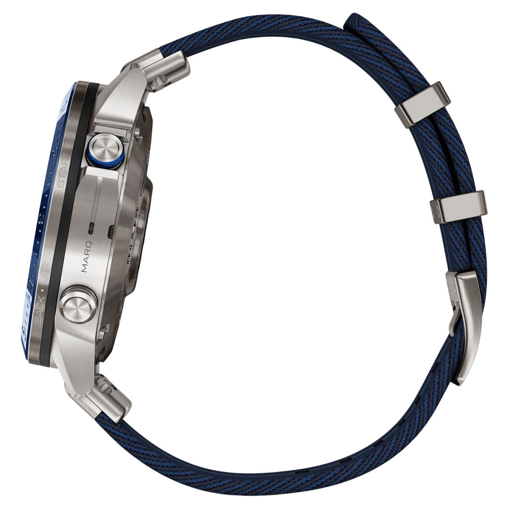 Conçue pour la vie sur l'eau, cette Tool Watch nouvelle génération de luxe est dotée d'un bracelet en nylon tissé à rayures inspiré des régates et d'un superbe écran tactile AMOLED avec boutons classiques. Son boîtier de 46 mm est en titane Grade 5 ultra résistant.
