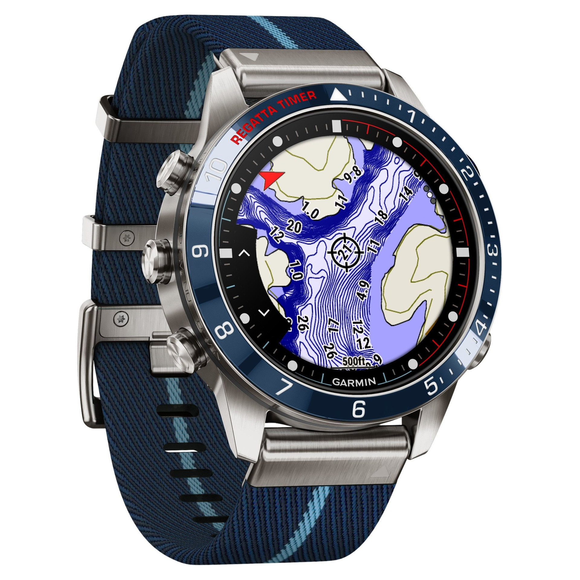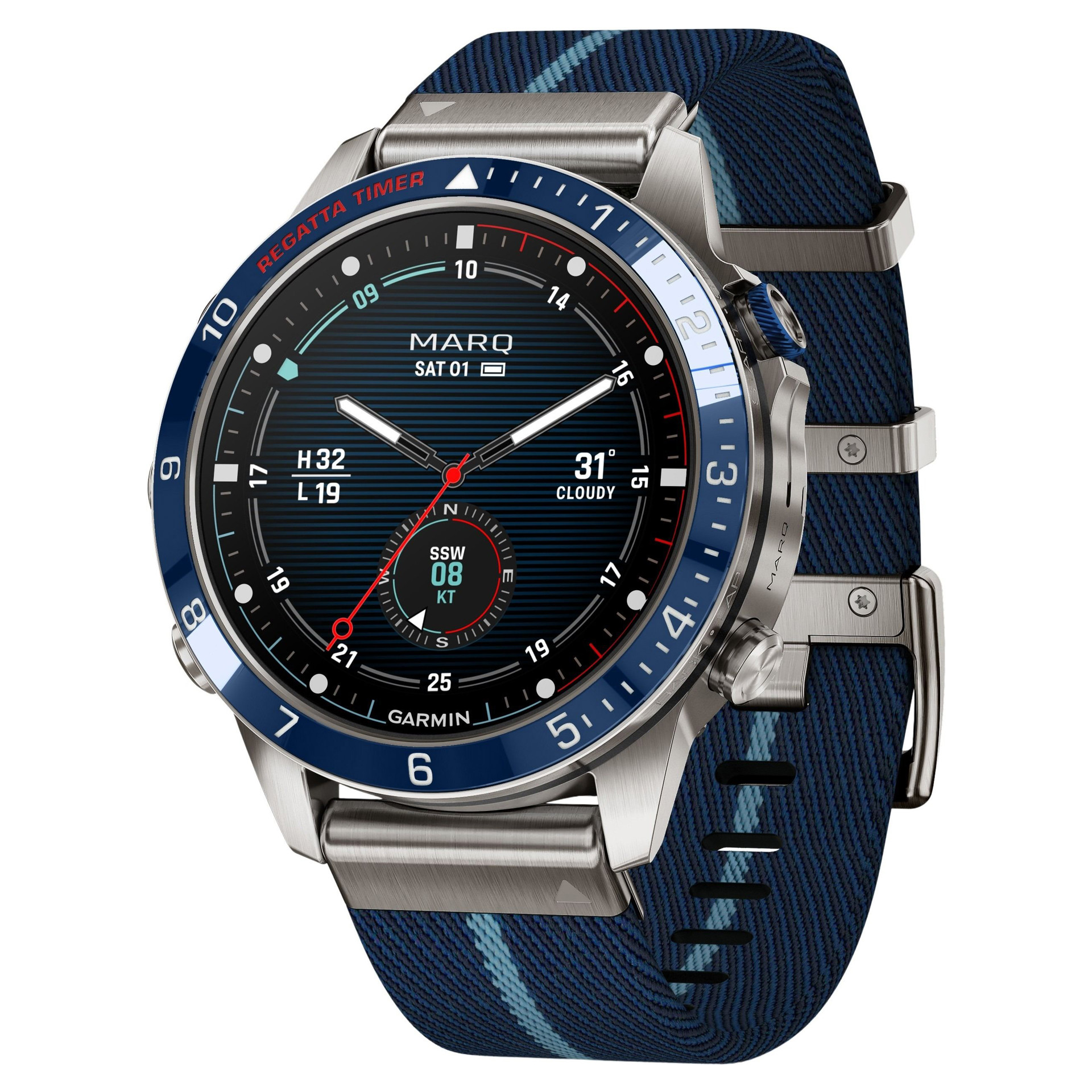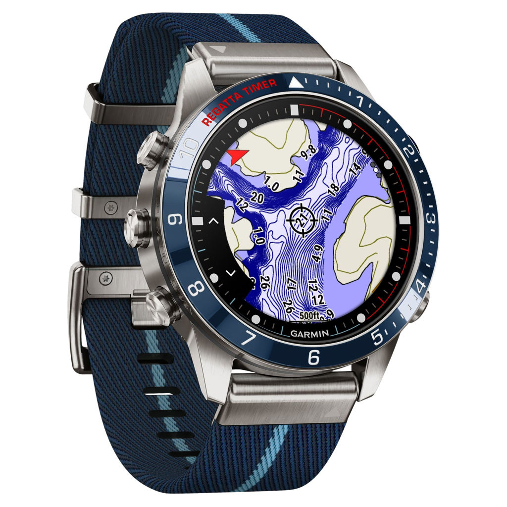 Conçue pour la vie sur l'eau, cette Tool Watch nouvelle génération de luxe est dotée d'un bracelet en nylon tissé à rayures inspiré des régates et d'un superbe écran tactile AMOLED avec boutons classiques. Son boîtier de 46 mm est en titane Grade 5 ultra résistant.
