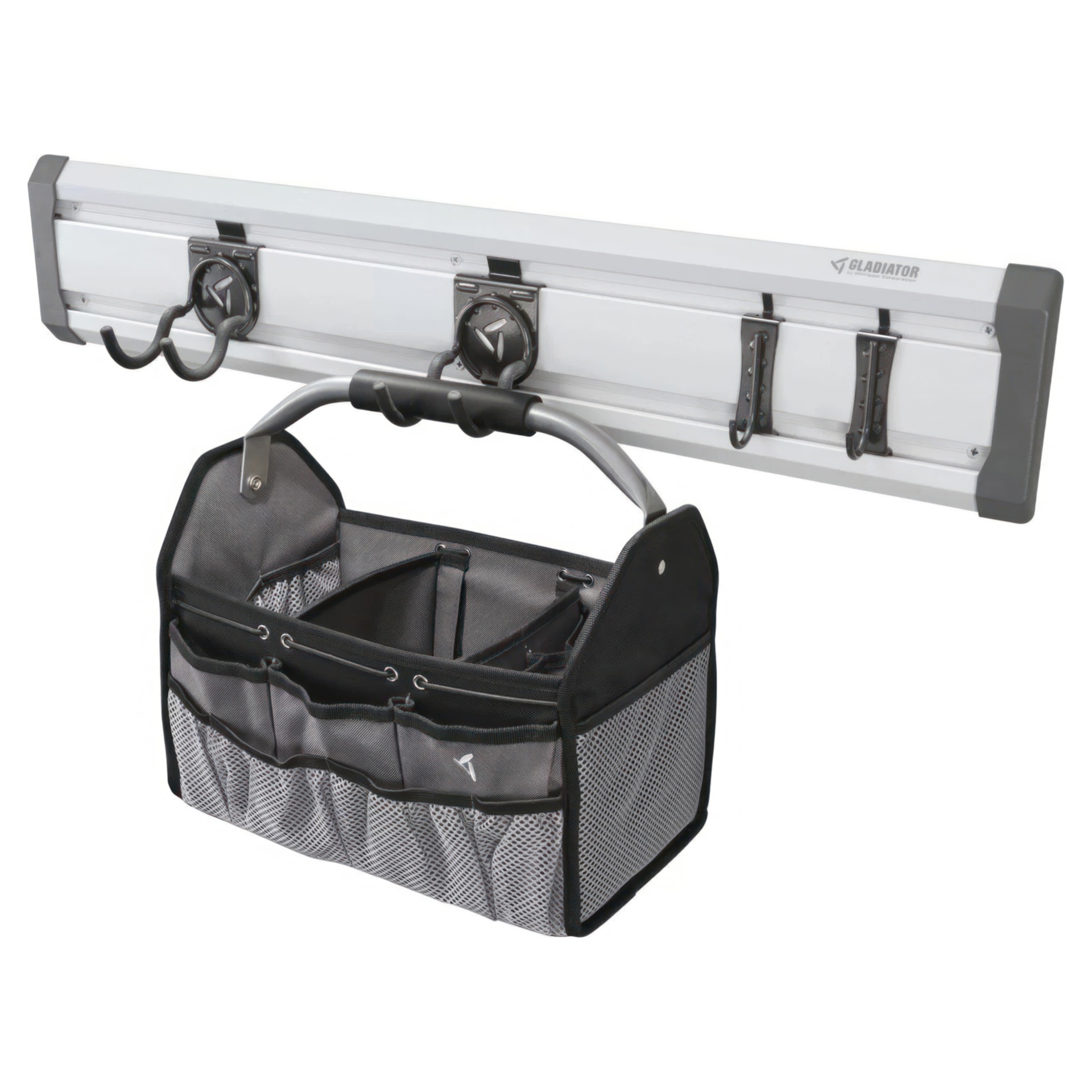 La trousse de jardinage GearTrack comprend un sac amovible pour le jardinage, le nettoyage et d'autres projets. Utilisez les crochets en J pour l'équipement léger tels les chapeaux de soleil; et les crochets arrondis pour les articles plus lourds comme les paniers. Comprend : (1) sac à projet, (2) crochets arrondis, (2) crochets en J, (1) canal GearTrack de 32 po (81,3 cm), (2) capuchons d'extrémité, (6) vis de couleur assortie, (1) embout de tournevis compatible