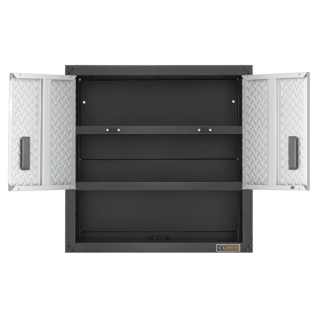 L'armoire murale GearBox à porte 3/4 prête à assembler Gladiator comprend une tablette inférieure avec ouverture pour accès au câble afin de connecter facilement des radios ou des chargeurs de piles à une source de courant. Les panneaux Gladiator GearWall et canaux GearTrack permettent de monter facilement cette armoire ainsi que de la déplacer là où vous en avez le plus besoin. Cette unité est idéale pour ranger les petits outils automobiles ou de jardin, ou le matériel de peinture, tout en les gardant à portée de main. Par ailleurs, sa conception rend lassemblage rapide et simple.