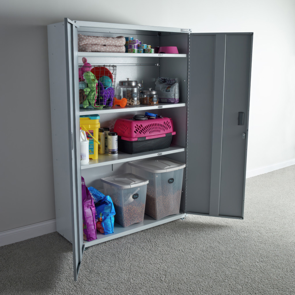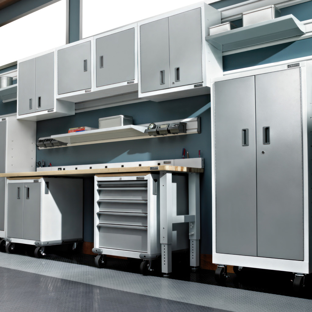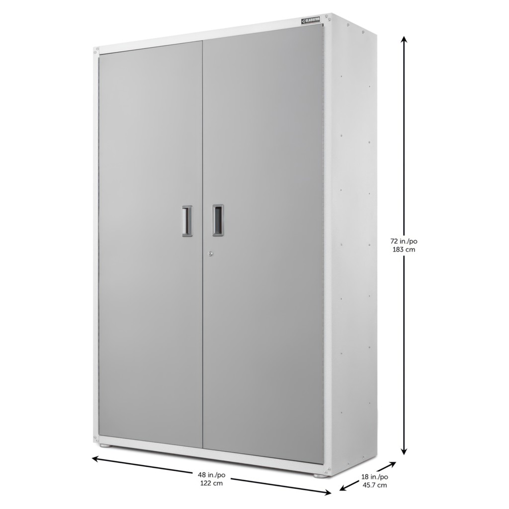 D'une hauteur de six pieds (182,9 cm), d'une largeur de quatre pieds (121,9 cm) et d'une profondeur d'un pied et demi (45,7 cm), la très grande armoire GearBox prête à assembler peut accueillir du matériel de différentes tailles. Rangez vos outils de jardinage, du matériel de peinture ou de l'équipement automobile sur quatre niveaux grâce à cette armoire de rangement robuste. La conception facilite un montage rapide, tandis qu'une trousse de supports muraux facultatifs vous permet d'accrocher l'armoire au mur à l'aide des systèmes muraux Gladiator. Non compatible avec la trousse de roulettes.