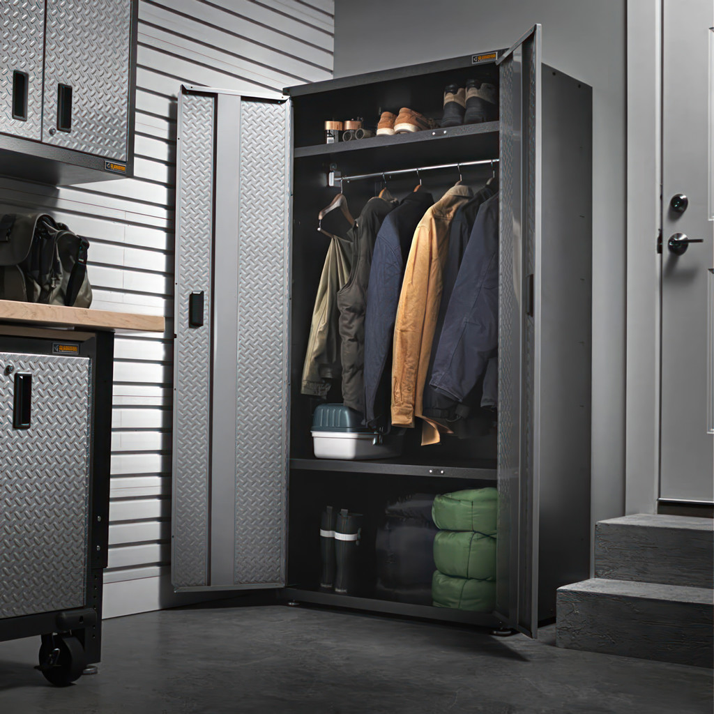 Le Gear Closet toutes saisons prêt à assembler, vous pouvez organiser les vêtements et l'équipement saisonniers, pour maximiser l'espace nécessaire dans d'autres zones de votre maison ou de votre garage.